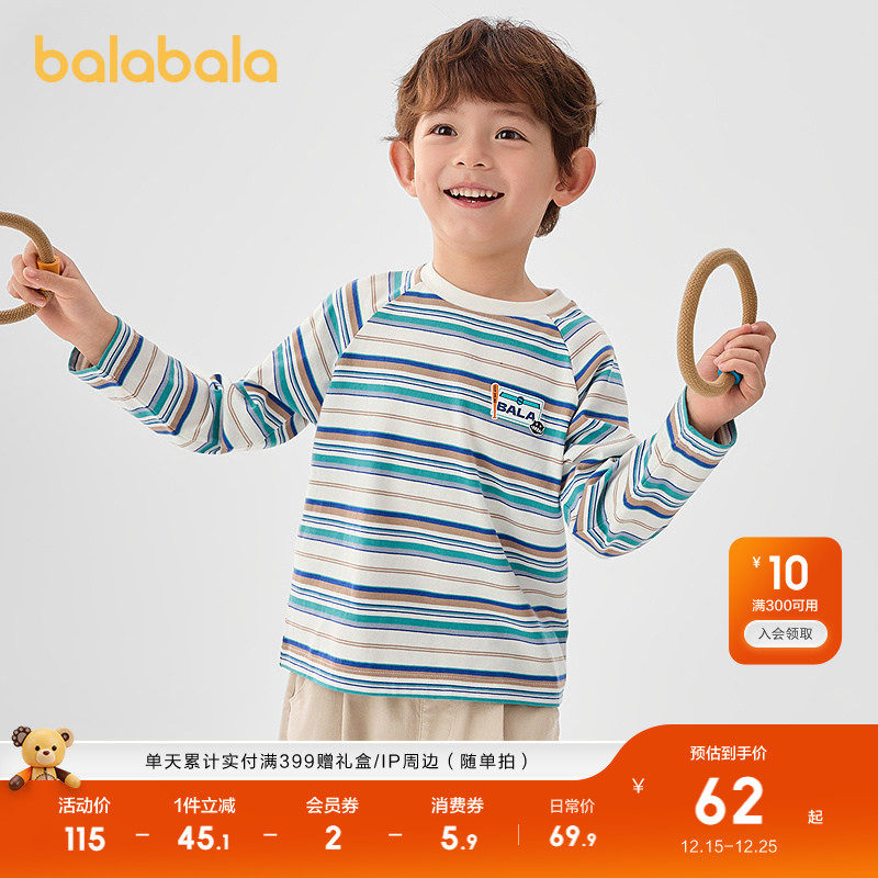 巴拉巴拉男童长袖t恤儿童装2025年新款秋冬装内搭宝宝插肩袖上衣