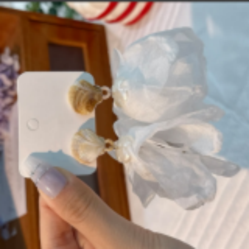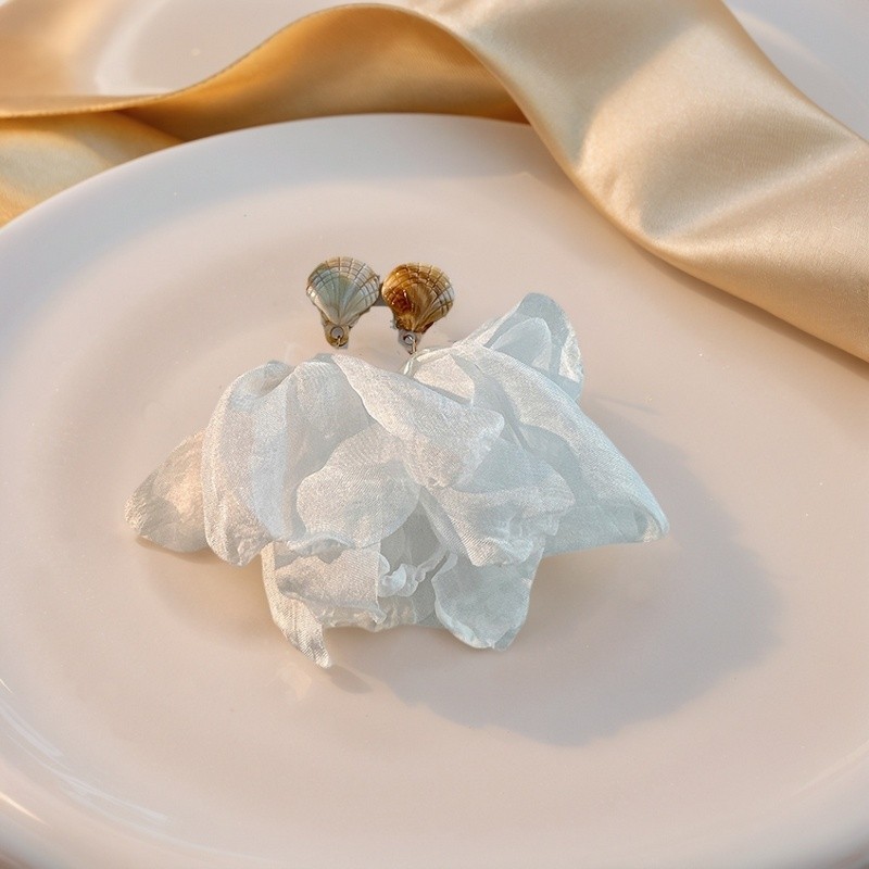 超仙氛围感贝壳雪纺耳钉小众设计高级感耳环温柔气质度假风耳饰女