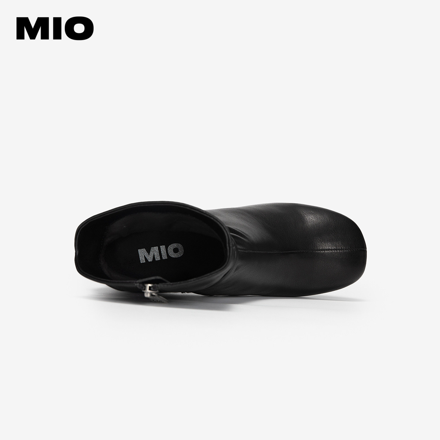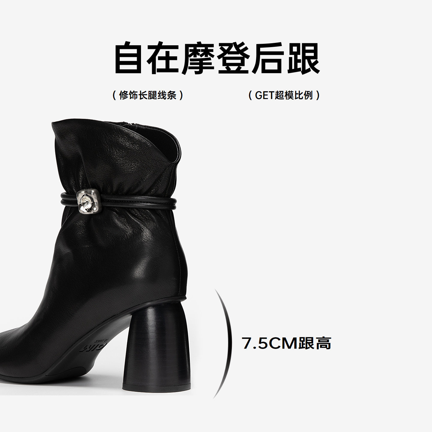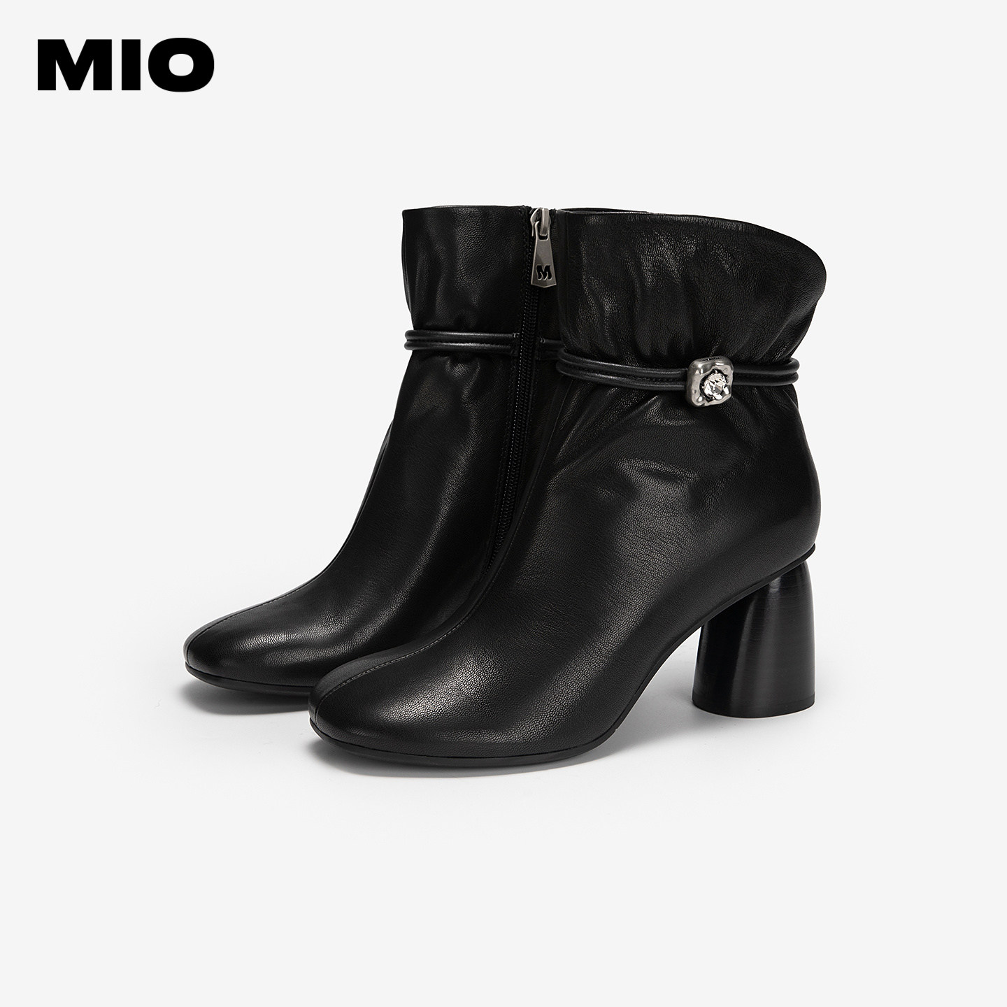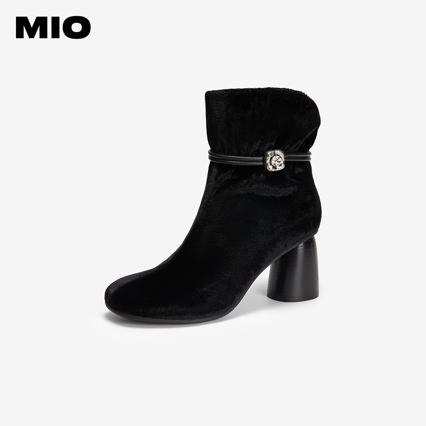 MIO米奥时装靴2025冬新款圆头高跟厚底百搭绒面瘦瘦靴羊皮短筒靴
