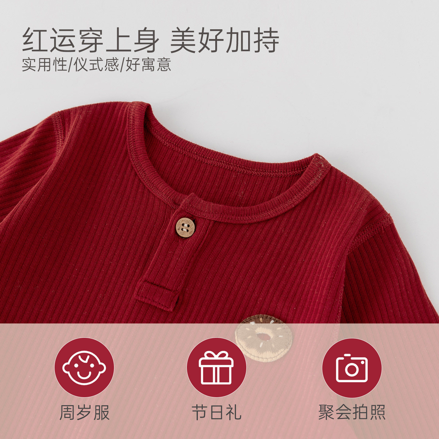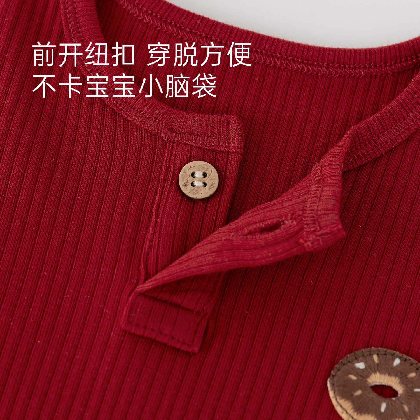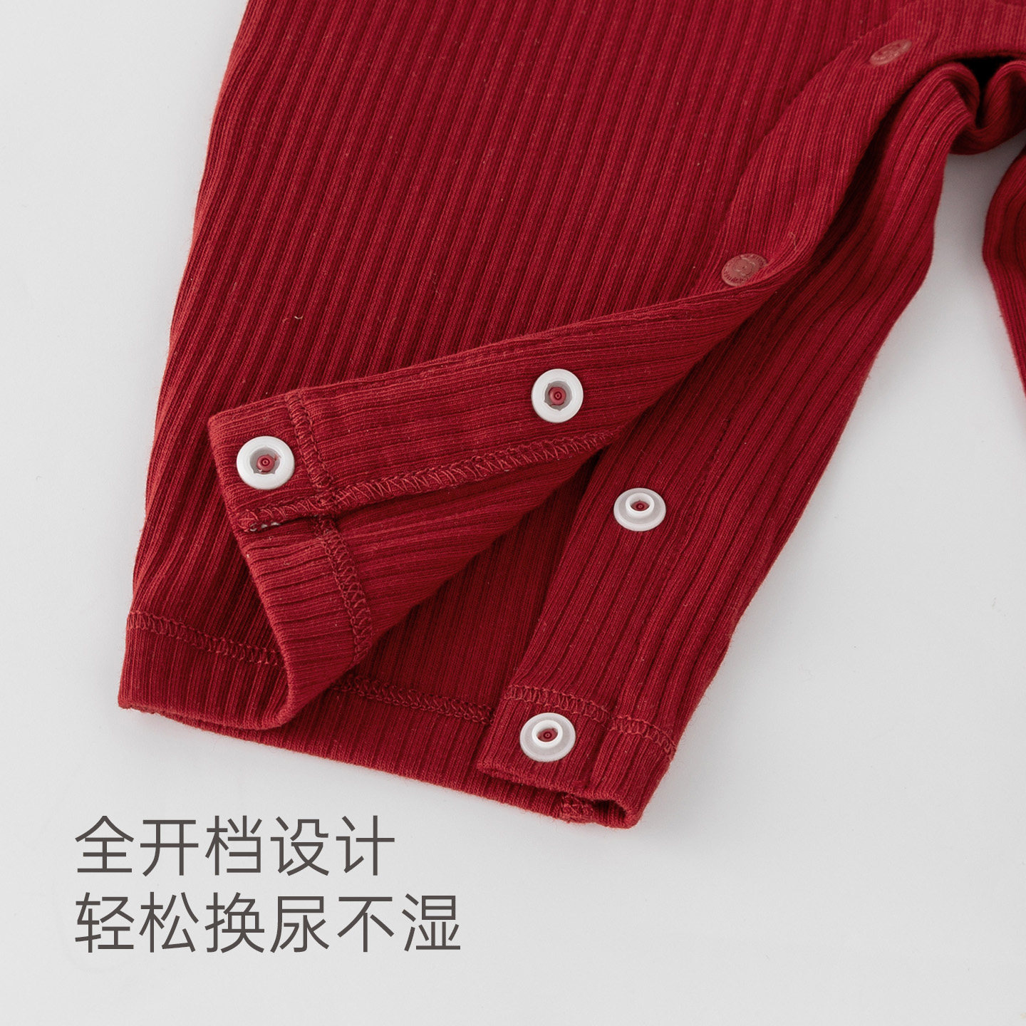 宝宝连体衣秋冬季婴儿无骨弹力睡衣红色喜庆过年新年家居哈衣爬服