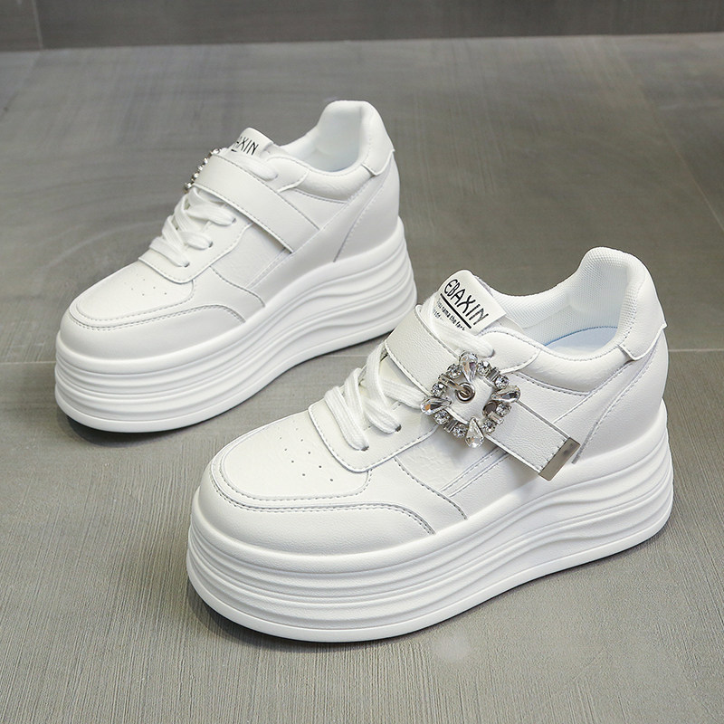 牛皮版~2025年秋冬新款真皮厚底内增高松糕休闲板鞋女百搭小白鞋