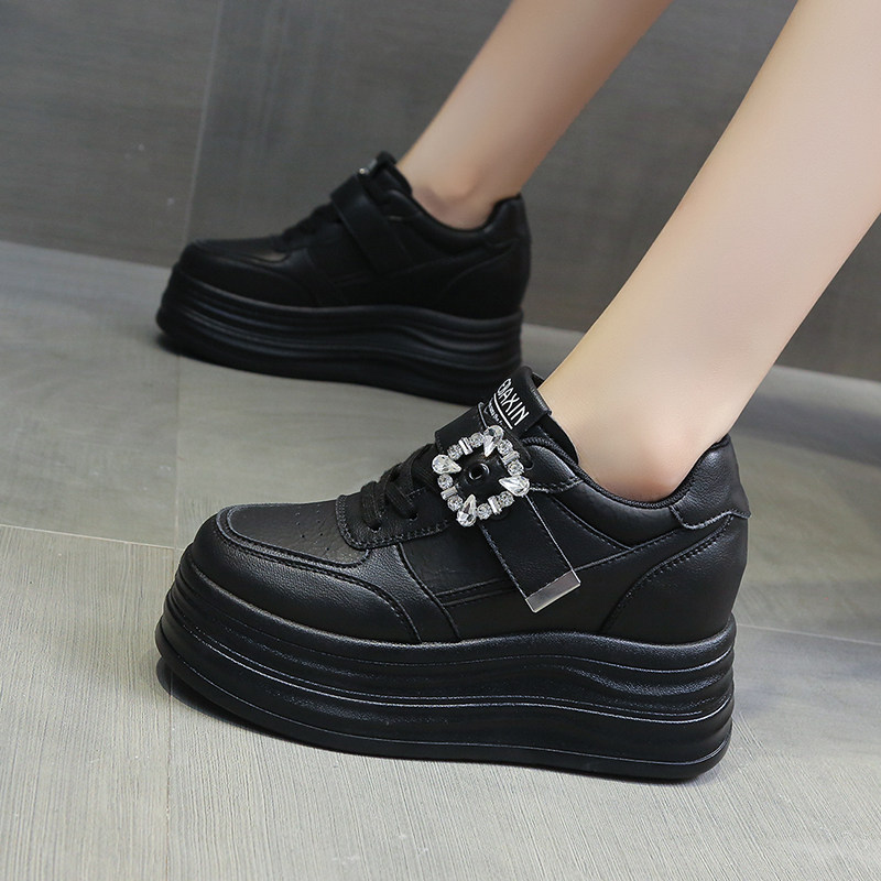 【明星同款】Wander around春秋款黑色厚底增高休闲板鞋男女同款
