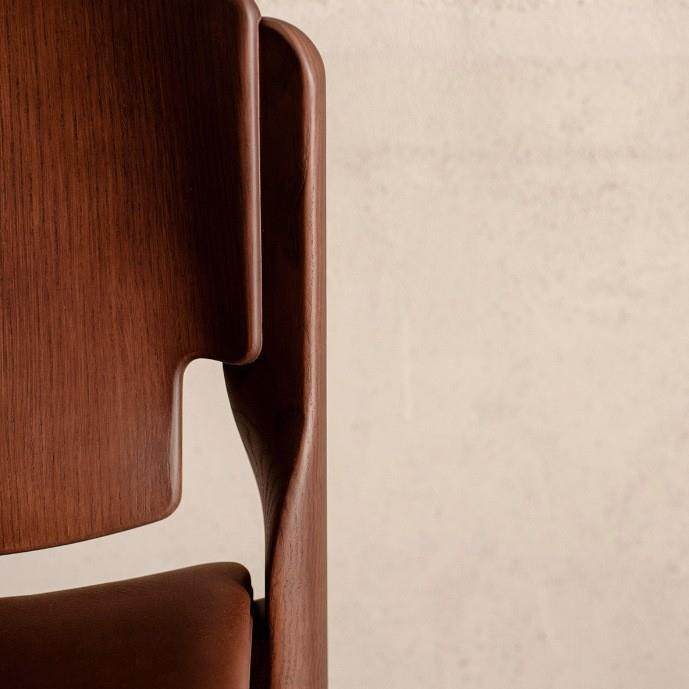 轻奢实木MCM寂风咖啡厅样板间家用马鞍皮酒店靠背椅子意式简约