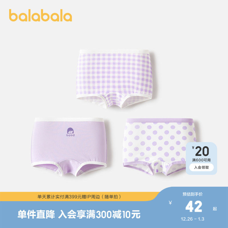 巴拉巴拉女童内裤平角棉儿童三角短裤女孩四角底裤萌不夹PP三条装