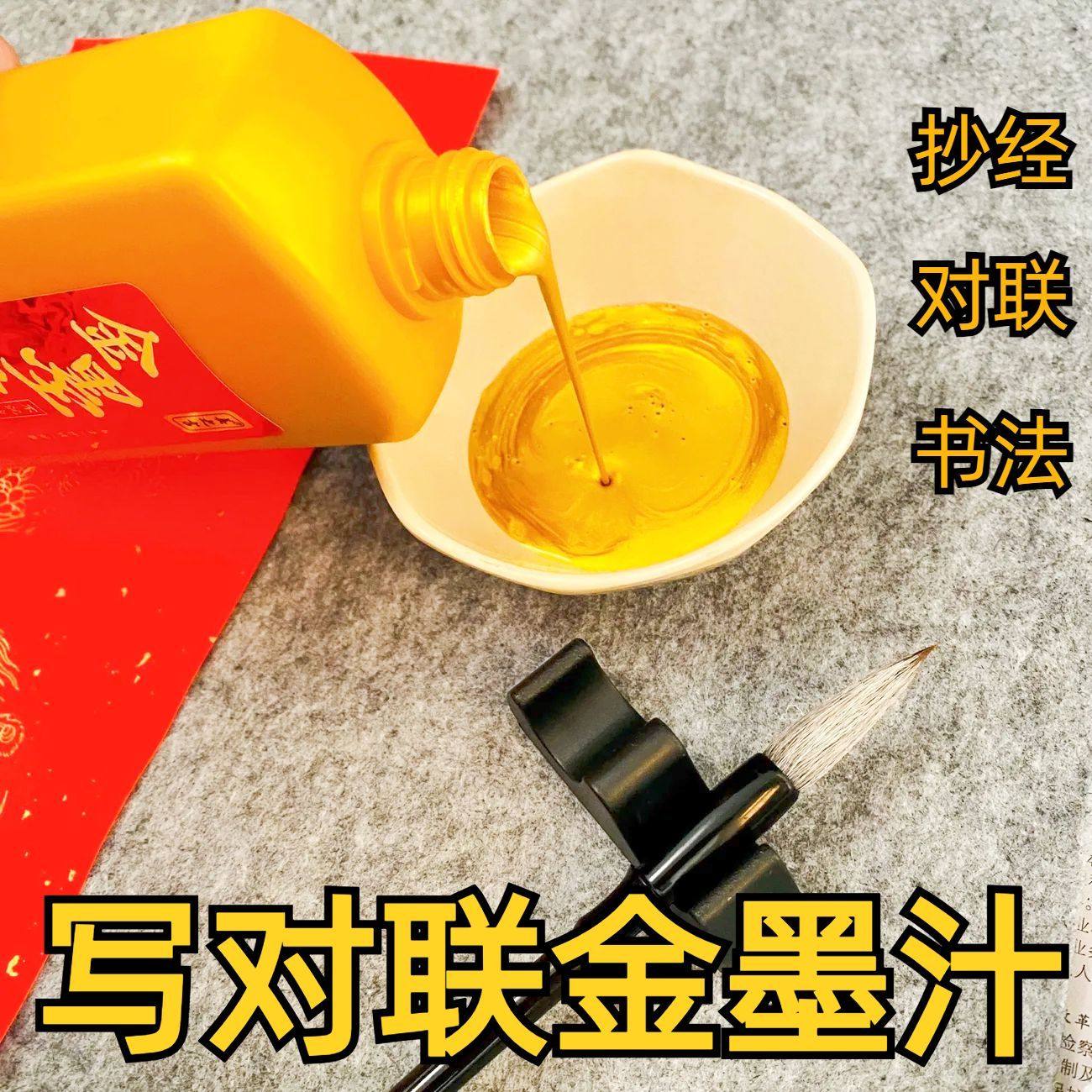 墨汁金墨金色墨水书法毛笔书画创作墨对联春联福字专用金色墨液