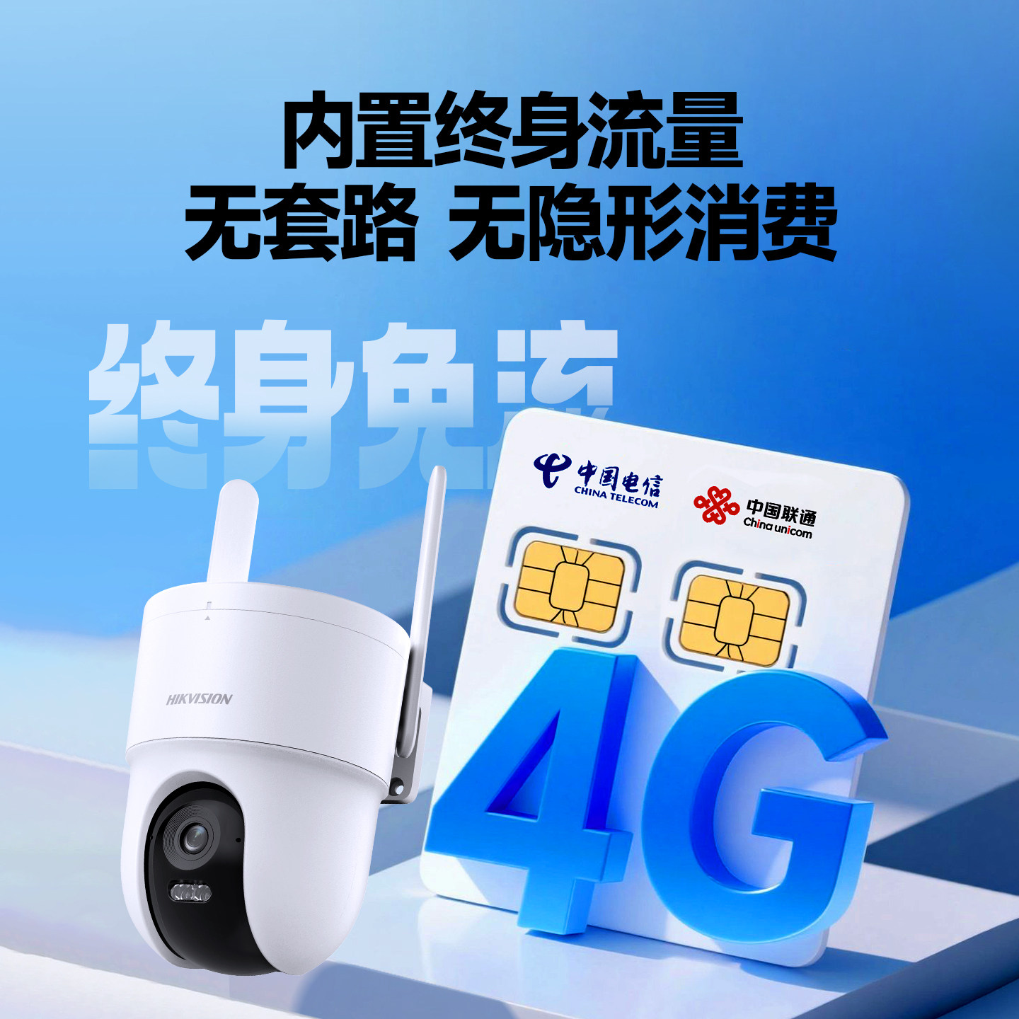 海康威视智能摄像头4G终身免流量500/800万高清夜视全彩商用超市店铺手机远程360度全景无死角室外监控摄影头