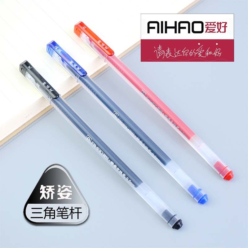 爱好矫正姿学生用中性笔简约ins风0.5mm全针管大容量水性笔三角杆