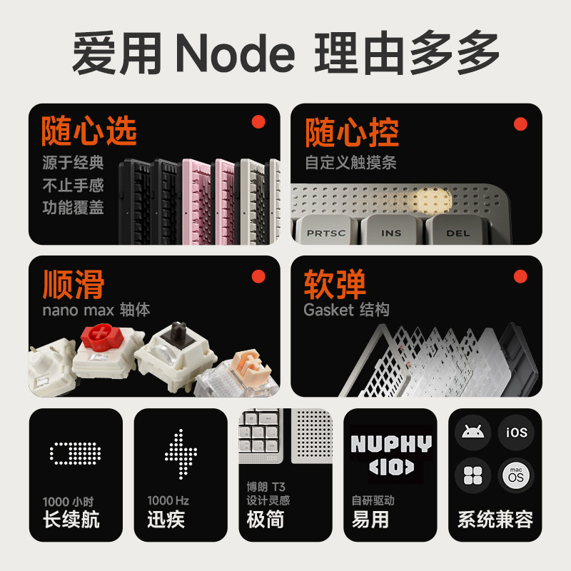 【圣诞礼物】NuPhy Node75矮轴机械键盘静音无线蓝牙办公手感好