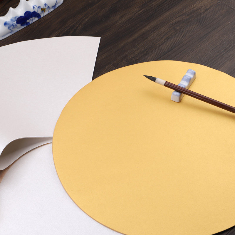 本悦安徽泥金宣纸团扇扇面画芯小楷工笔花鸟人物 熟宣效果作品泥金泥银宣纸团扇面小品创作熟宣纸圆形扇面