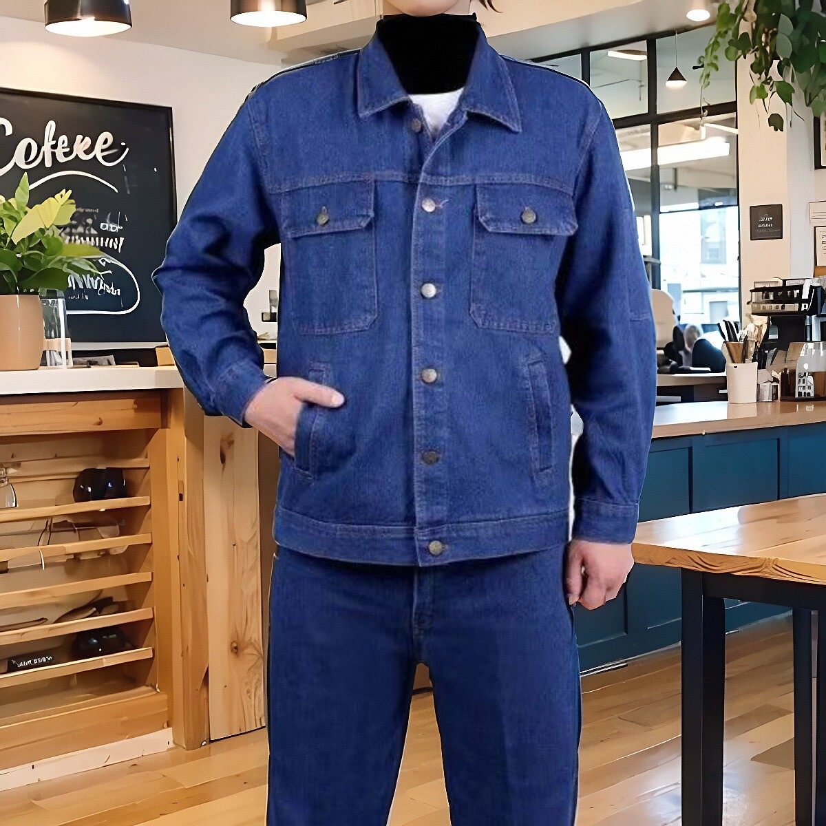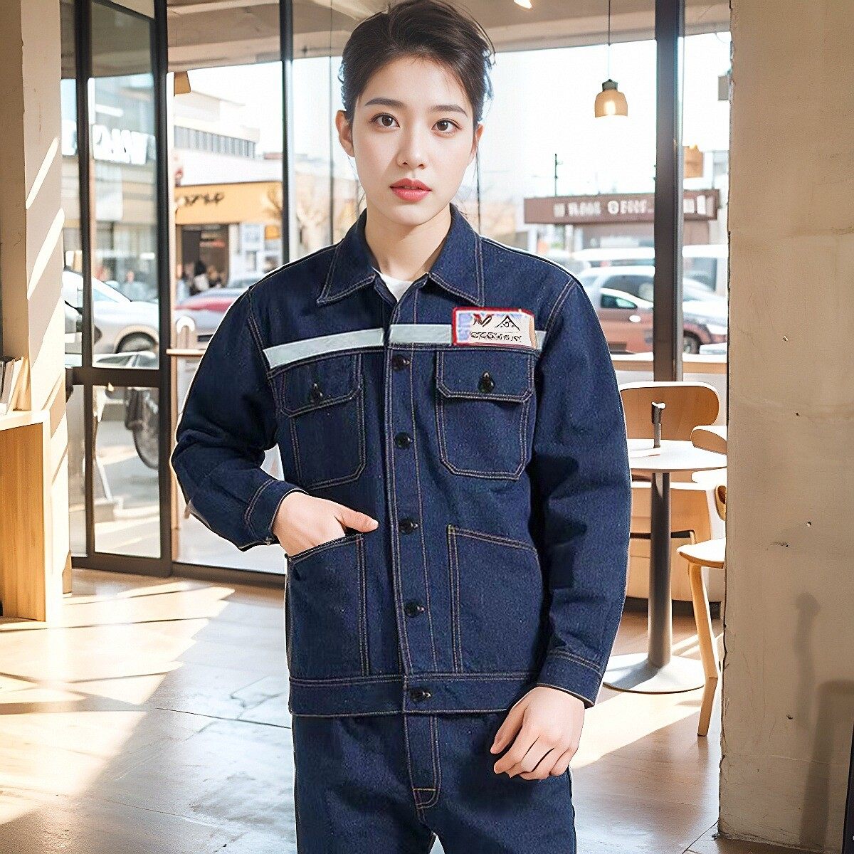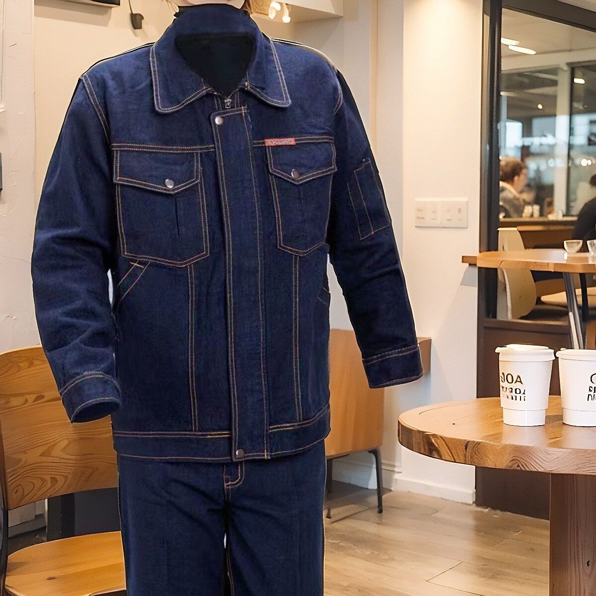 牛仔工作服套装加厚劳保服耐磨电焊防烫工装电工焊工服工人上衣