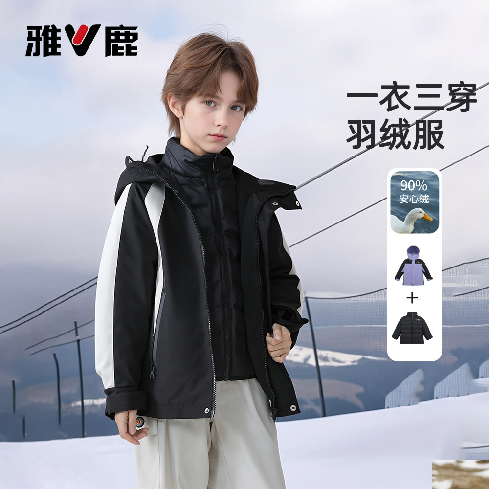 雅鹿三合一两件套中大童男女户外儿童羽绒服可拆卸内胆小学生班服