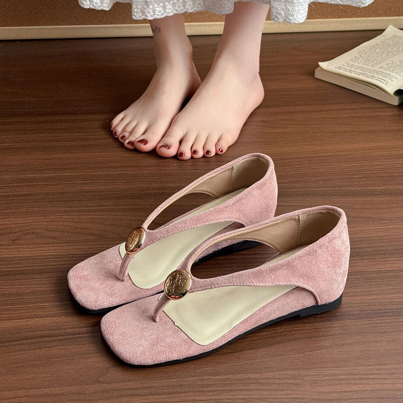 St&Sat/星期六法式复古拼色尖头黑色平底鞋后空包头凉鞋女单鞋夏