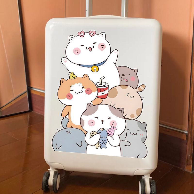 卡通可爱ins风层叠猫行李箱贴纸大张拉杆箱旅行箱墙壁房间防水贴