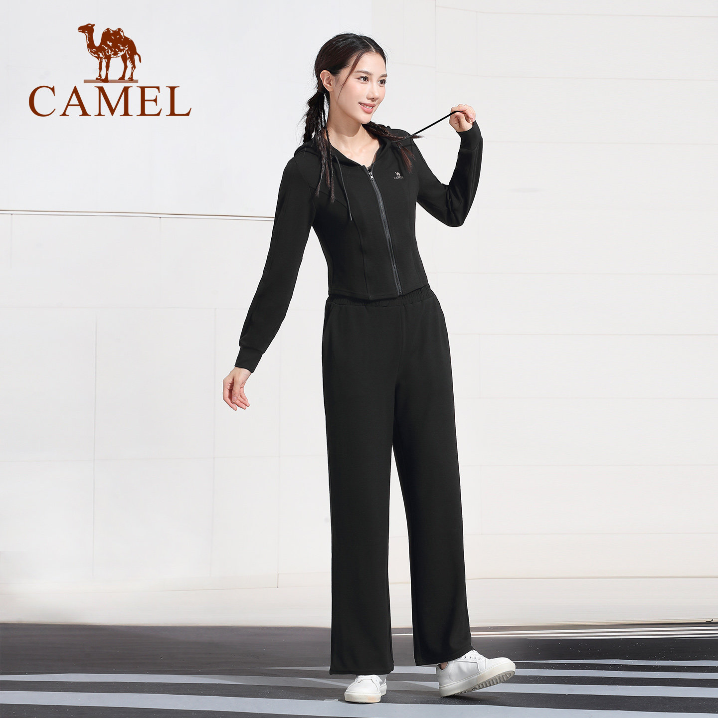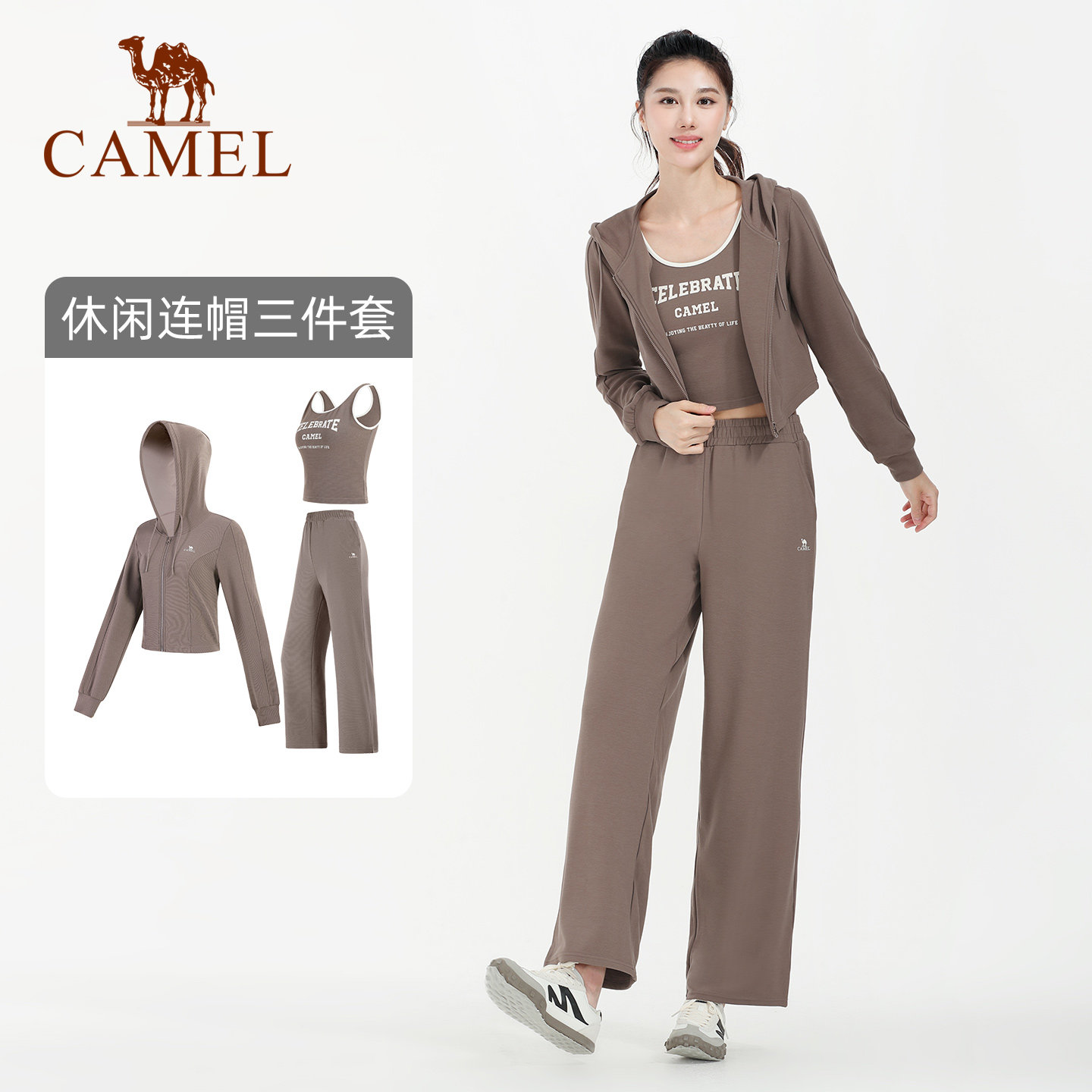 骆驼休闲套装女秋冬保暖修身显瘦舒适时尚潮流百搭连帽运动三件套