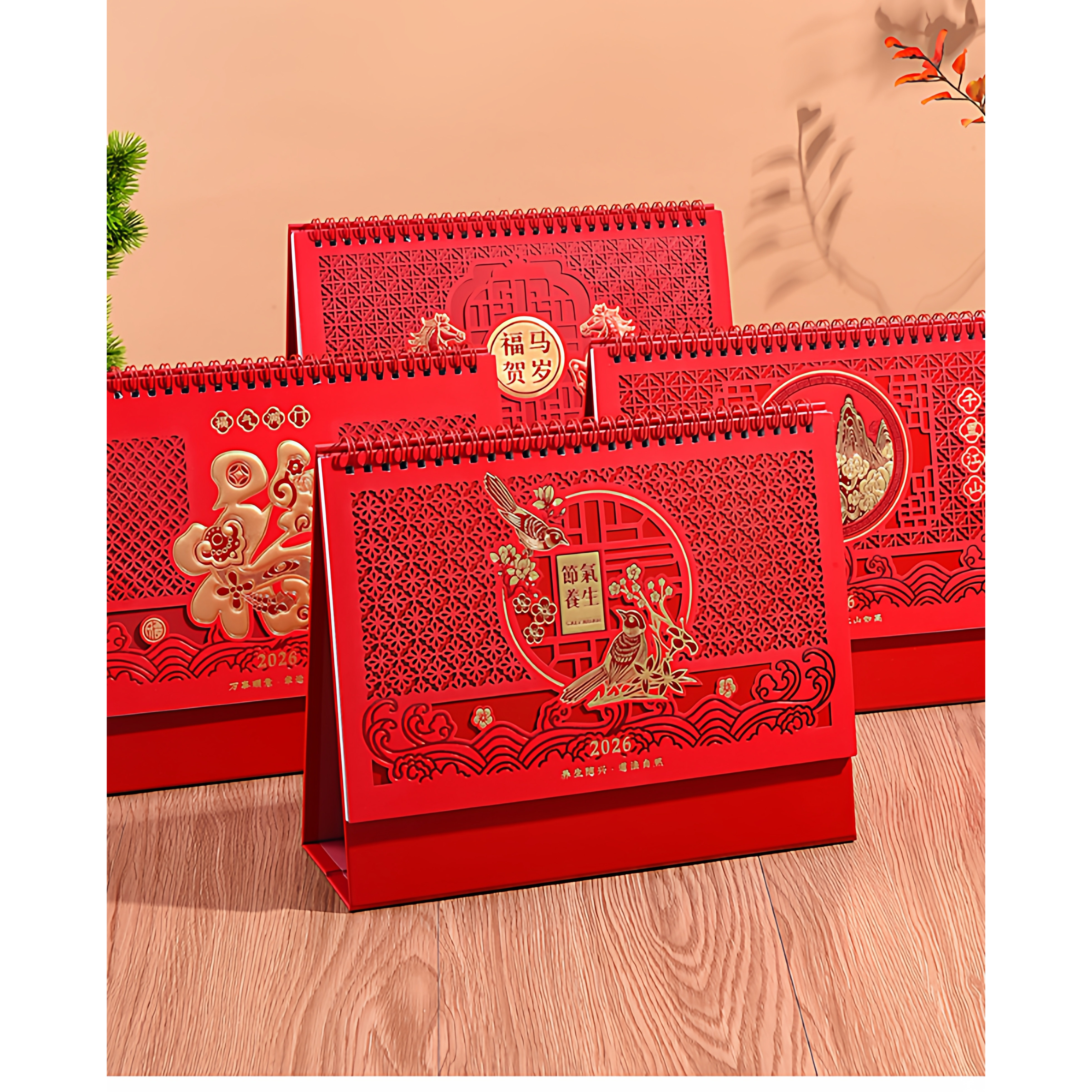 新款2026马年台历定制印刷桌面简约月历摆件烫金广告创意记事本