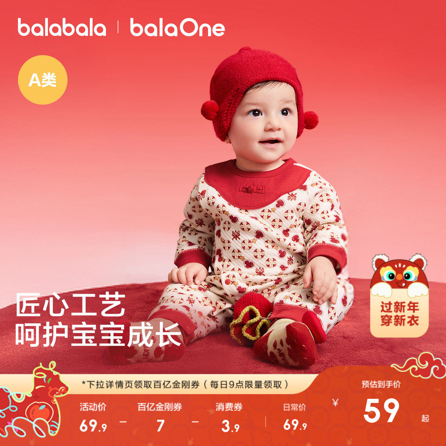 巴拉巴拉童装宝宝连体衣新生婴儿衣服哈衣2025新款年服喜庆可爱萌