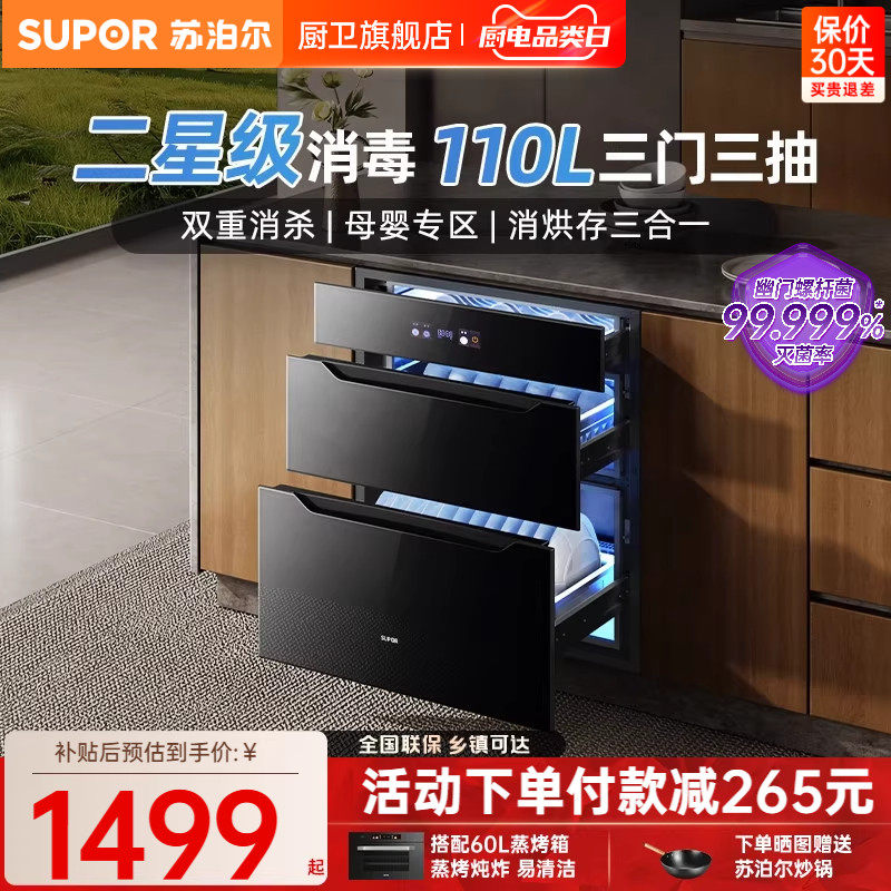 【三抽】苏泊尔MQ11消毒柜家用嵌入式二星级消毒母婴专区MQ12MQ13