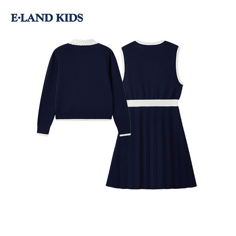 【100%棉】eland kids衣恋童装女童针织套装25冬新品背心裙两件套