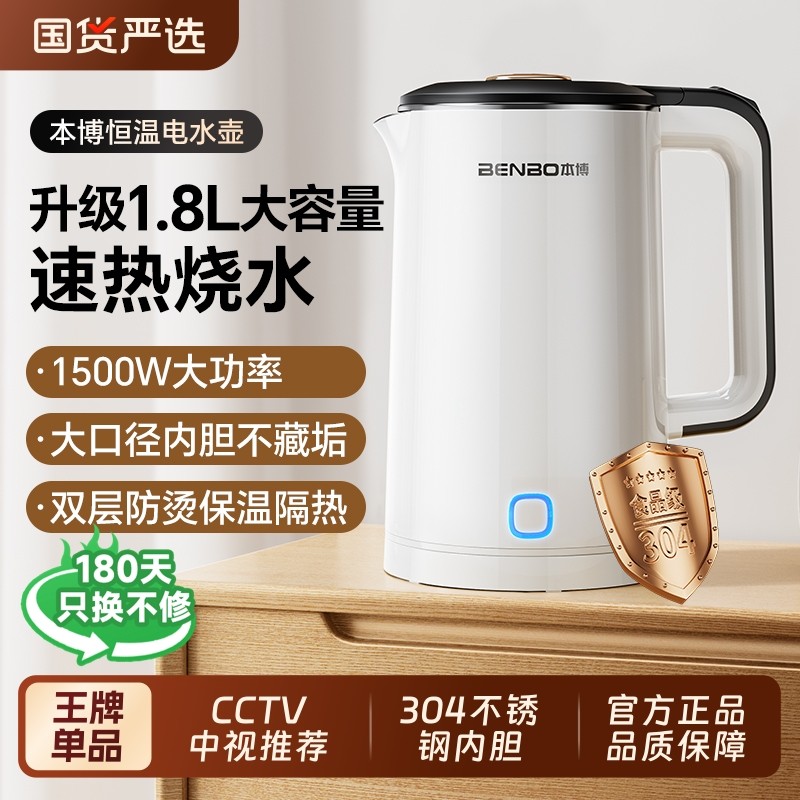 本博电热水壶家用不锈钢保温一体烧水壶2025新款家用恒温电水壶