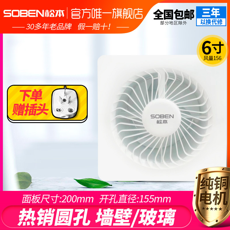 松本排气扇家用卫生间6寸玻璃橱窗式换气扇厨房浴室厕所静音APC-F