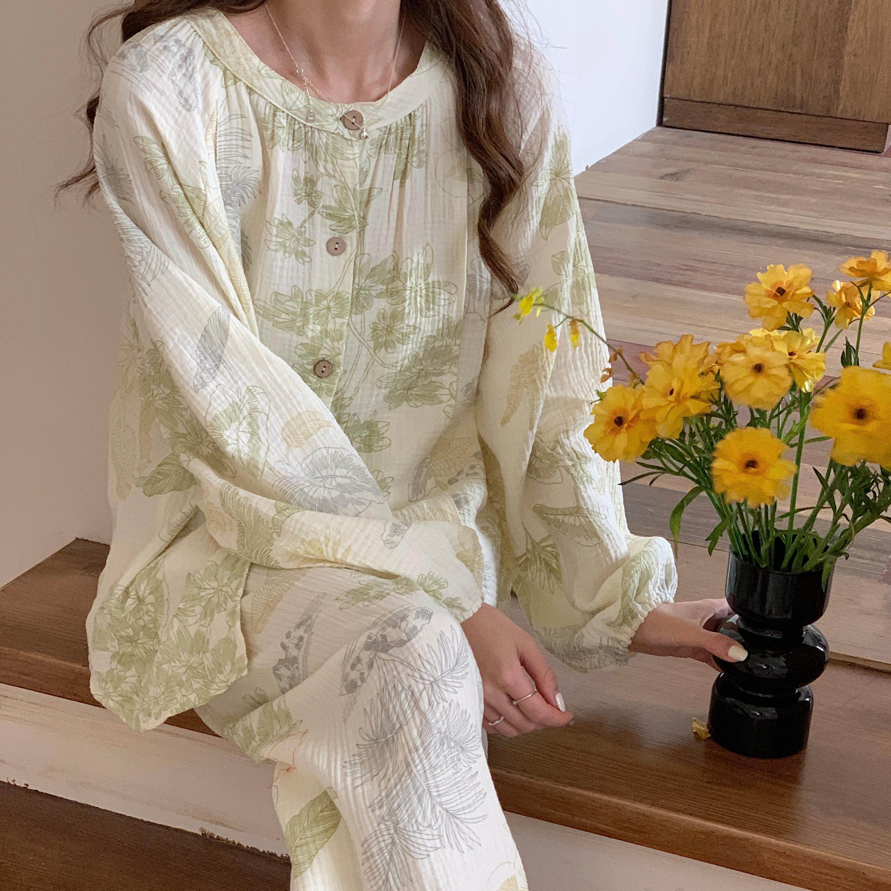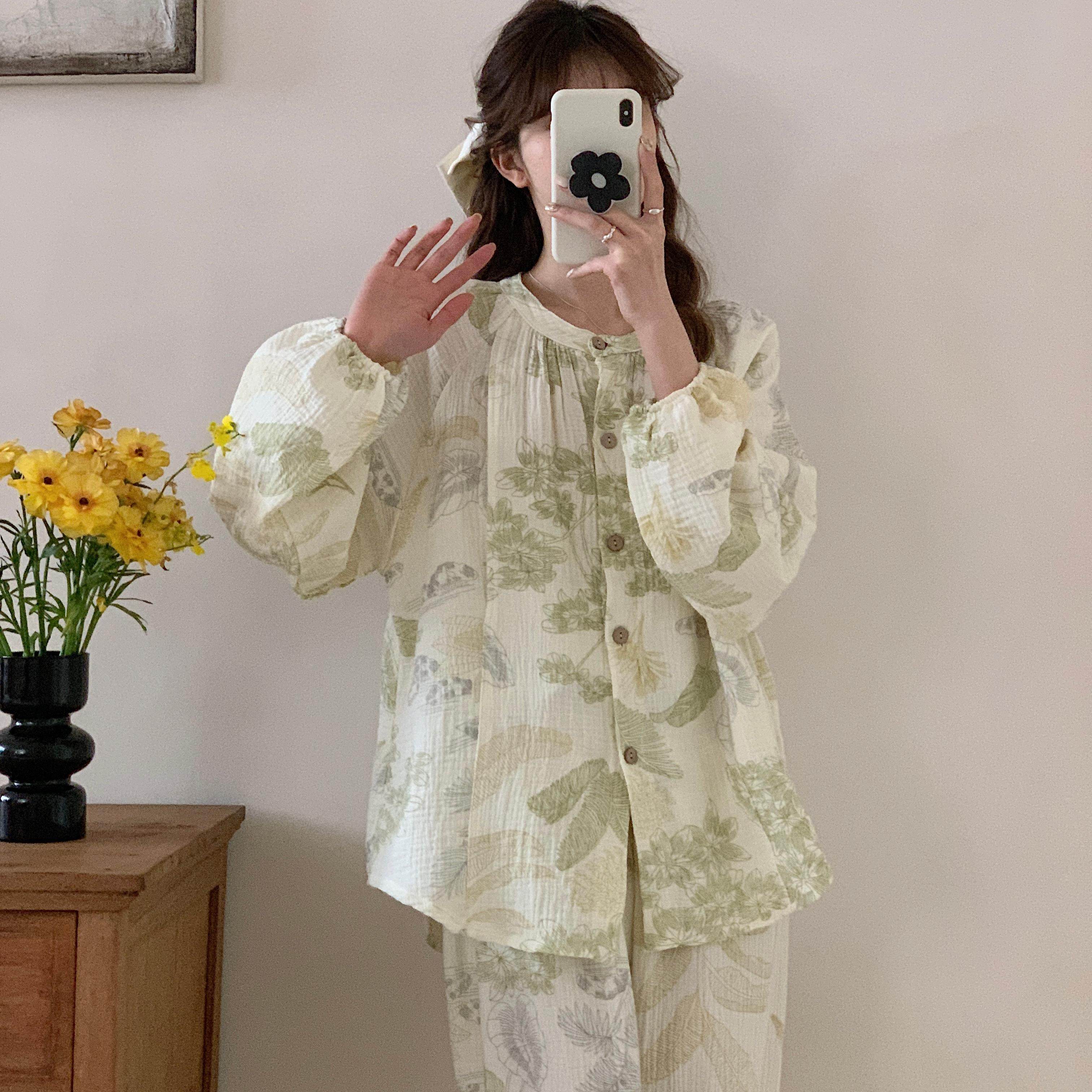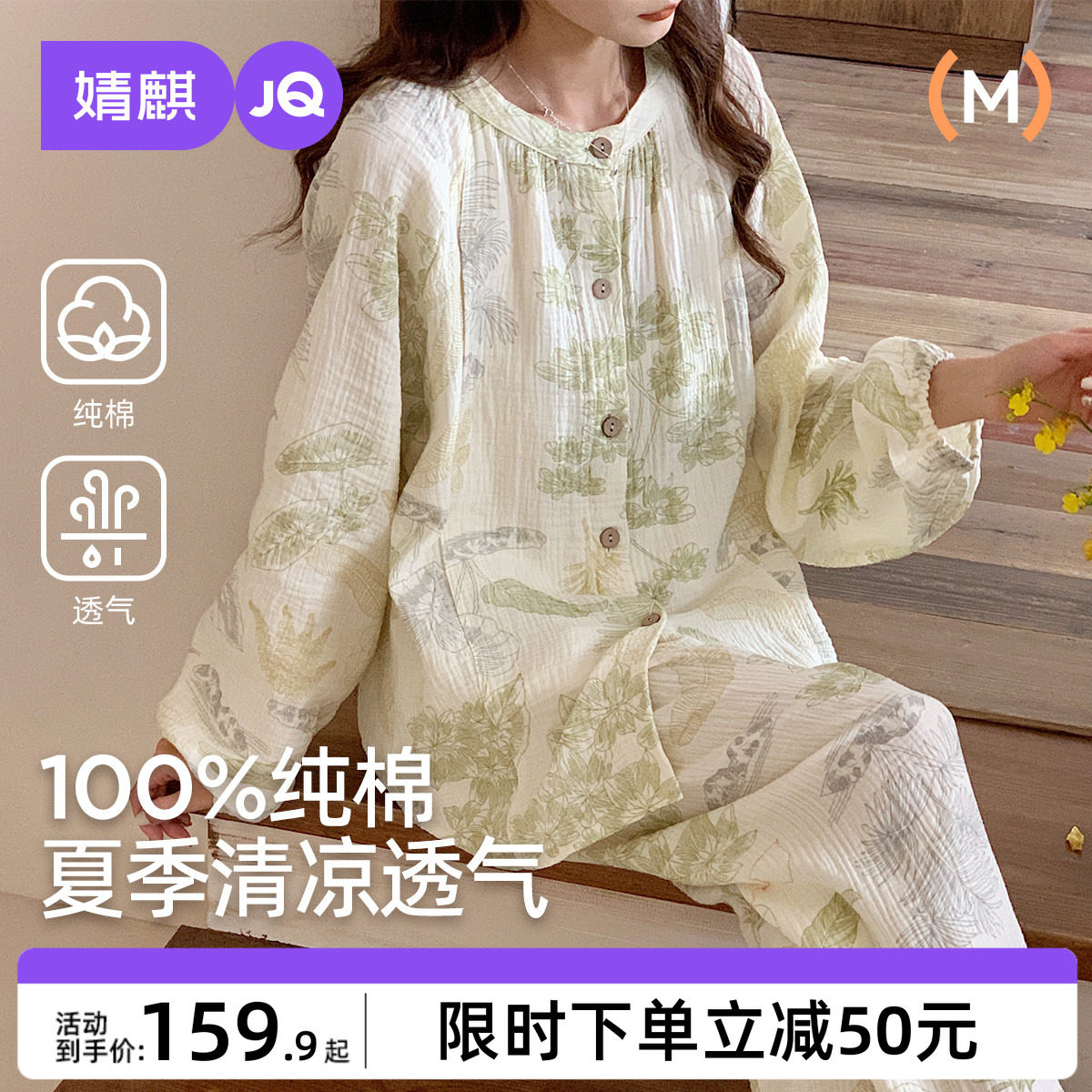 婧麒月子服纯棉纱布夏季薄款产后产妇哺乳大码孕妇睡衣全棉家居服