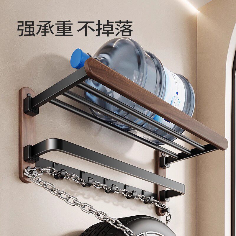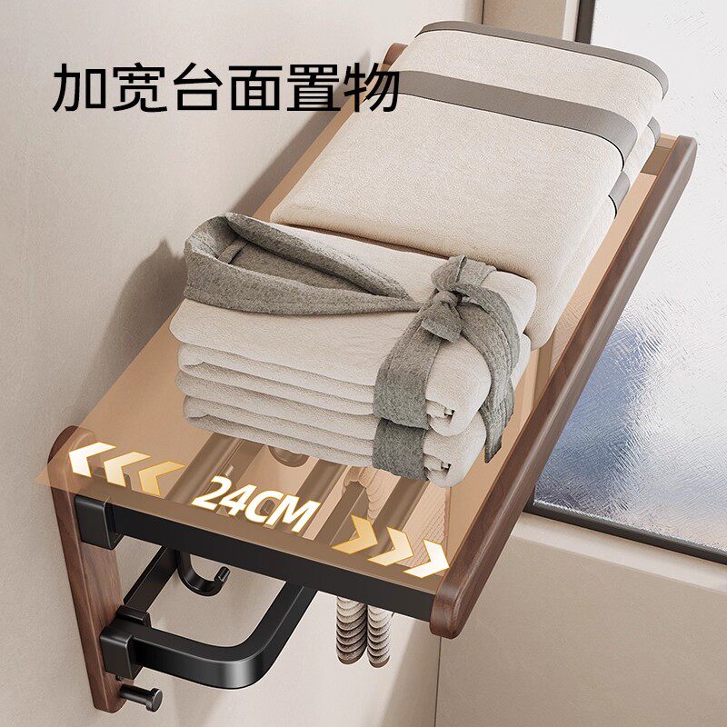 胡桃木卫生间毛巾架免打孔中古风高端浴巾置物架厕所浴室架五件套