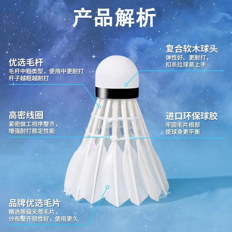 羽毛球鹅毛12只装/6耐打王白色黑色训练专业比赛耐打球夜光尼龙