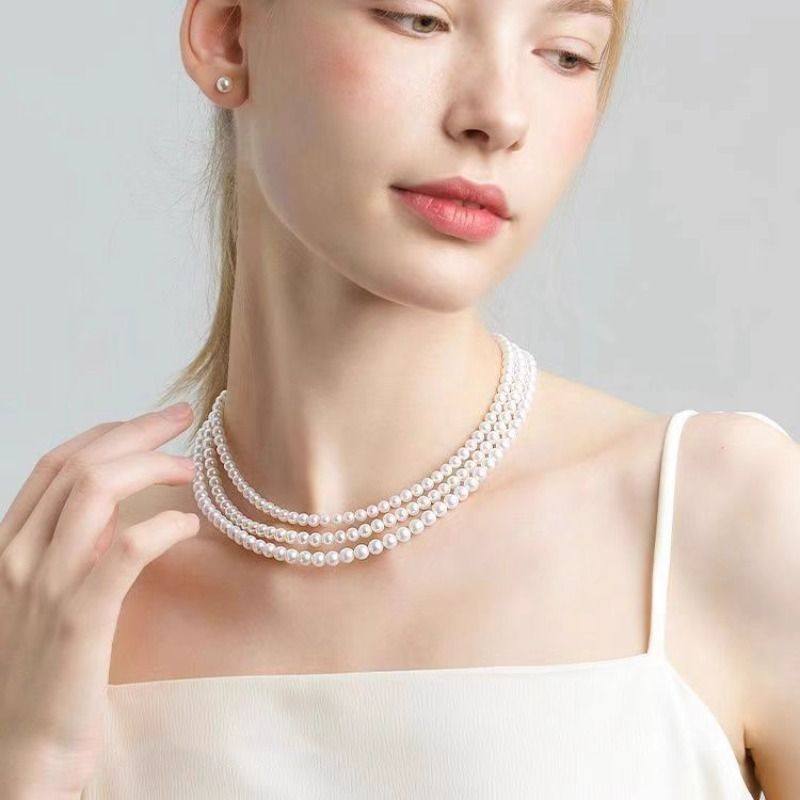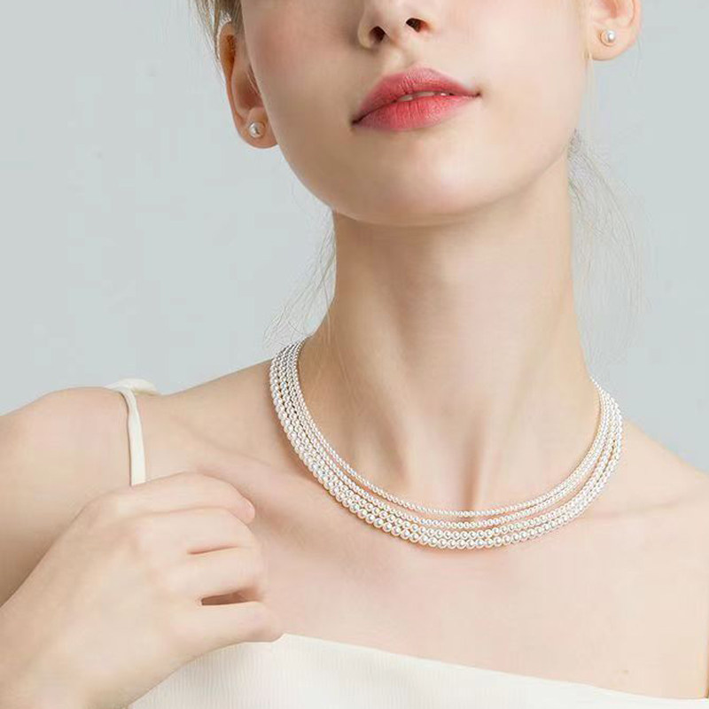 冷光澳白色强光小米珍珠项链女叠戴法式人造珍珠锁骨链高级感颈链