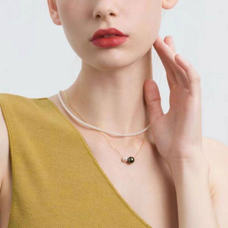 施家真多麻灰色珍珠项链颈链轻奢小众毛衣链配饰女款2025新款爆款