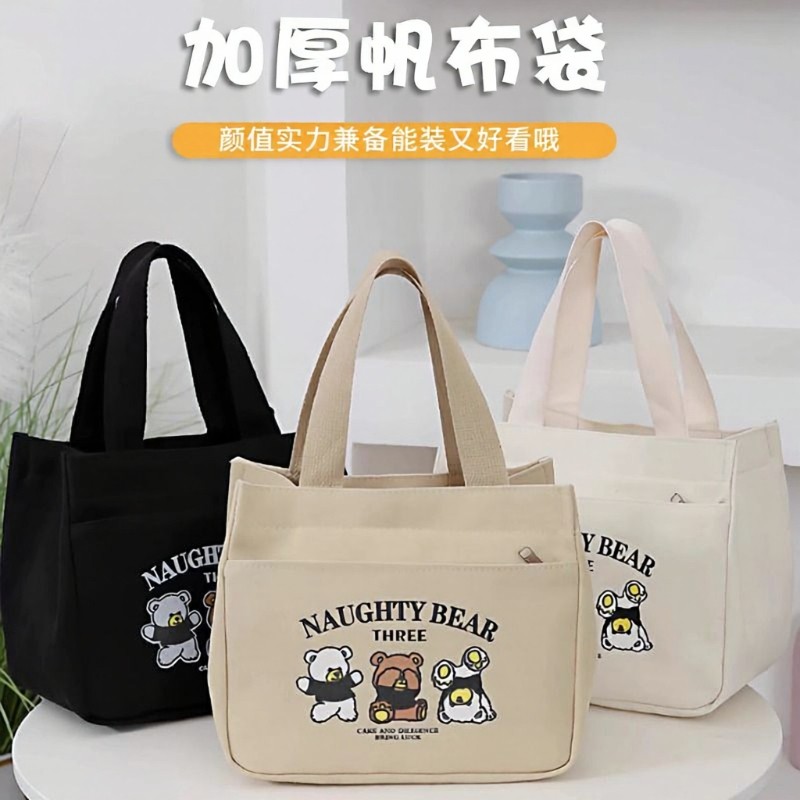高颜值手提包外出帆布小巧立体拎包通勤加厚上班便当饭袋大容量