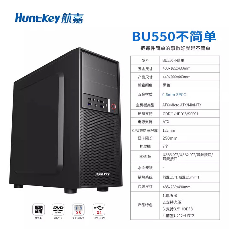 航嘉BU550/BU406/BU560机箱台式机主机办公电脑小机箱加厚板材ATX