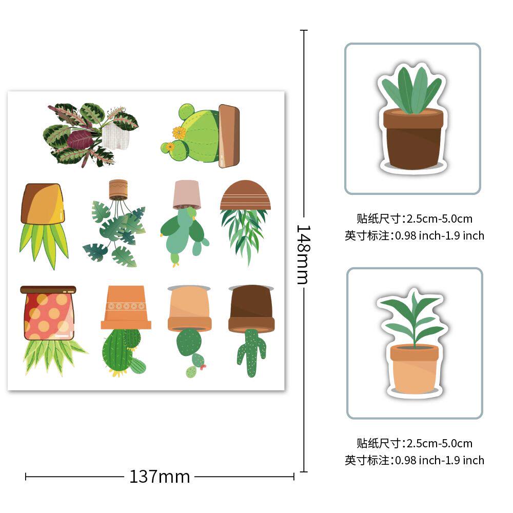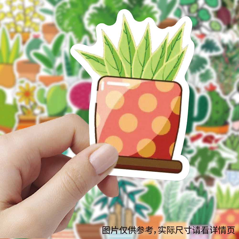 60张盆栽绿植贴纸卡通可爱创意装饰手账本桌面手机壳防水贴画diy