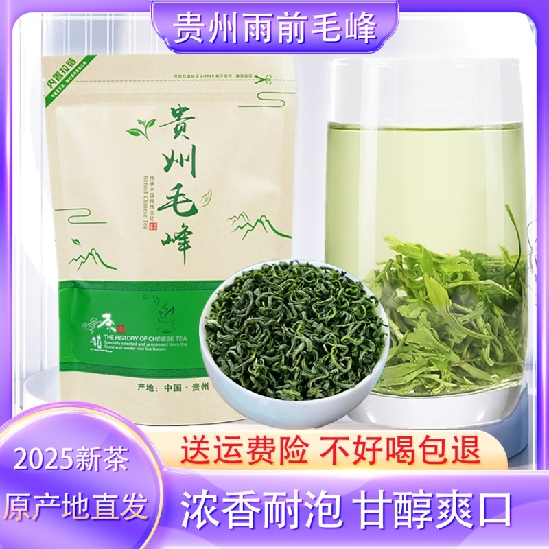 雨前浓香毛峰绿茶2025年新茶贵州高山云雾口粮茶湄潭耐泡炒青袋装