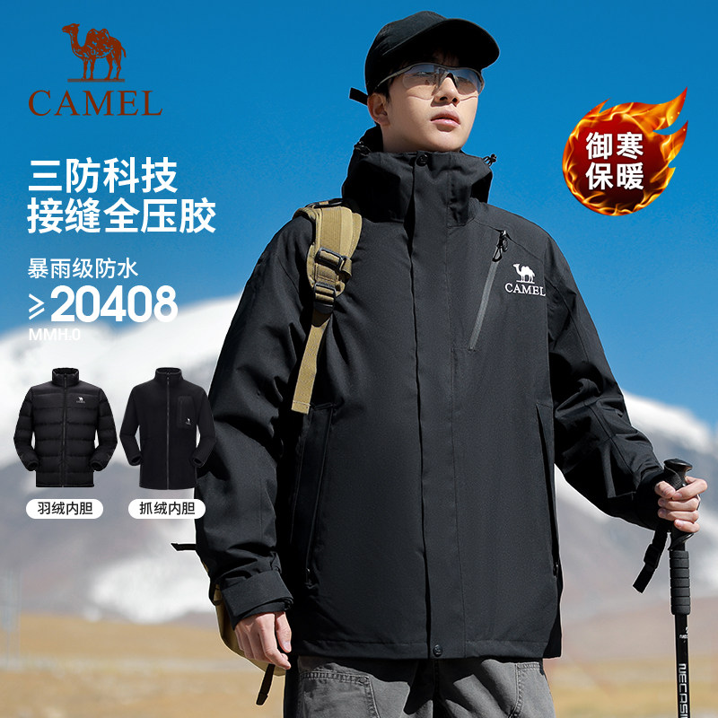骆驼户外雨神冲锋衣男三合一羽绒服冬季防水外套女三防旅游滑雪服