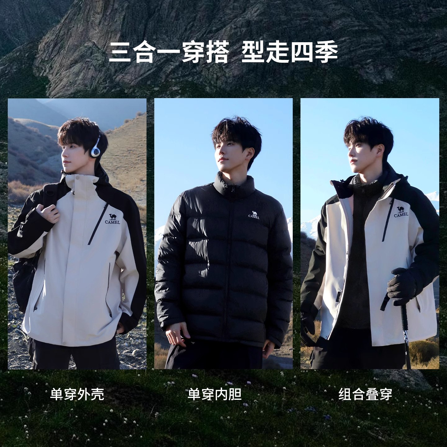 骆驼户外冲锋衣女款25年三合一鹅绒内胆三防保暖羽绒登山服外套男