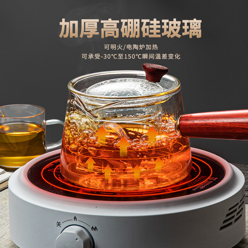 玻璃茶壶围炉煮茶耐高温单壶家用泡茶壶侧把烧水壶茶具茶杯套装