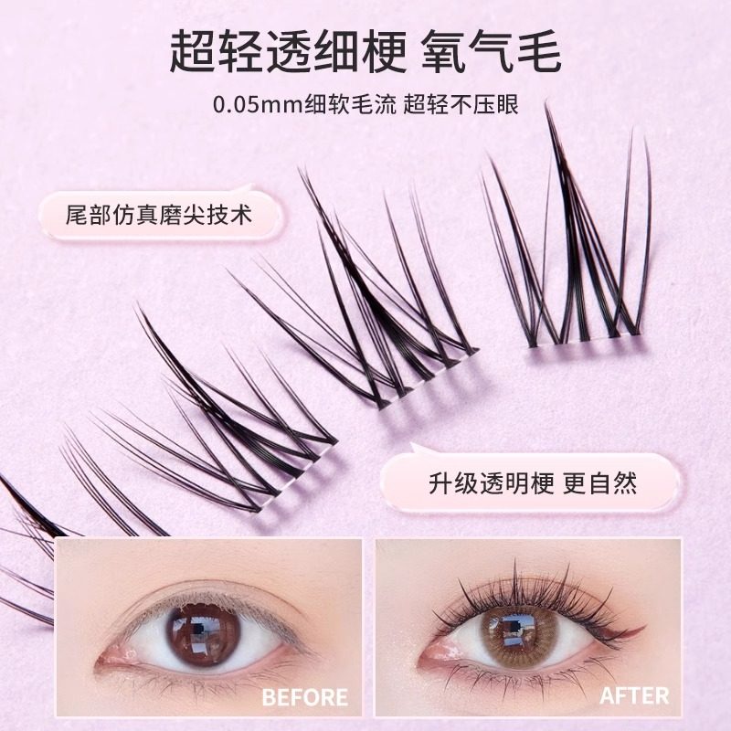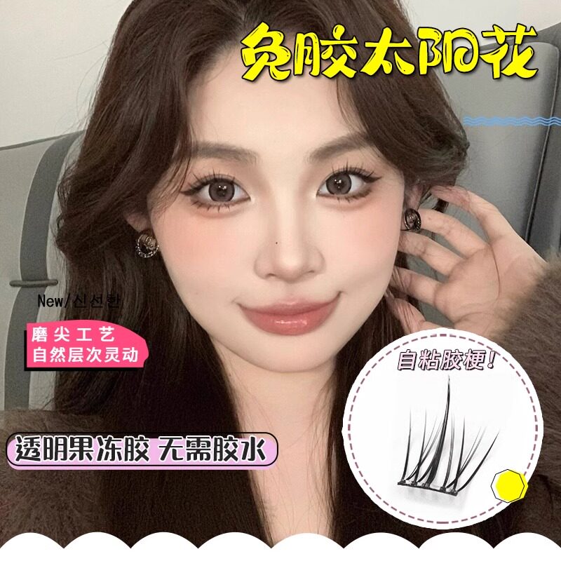 免胶懒人系太阳花假睫毛女自然仿真三部曲单簇自粘眼睫毛精灵浓密