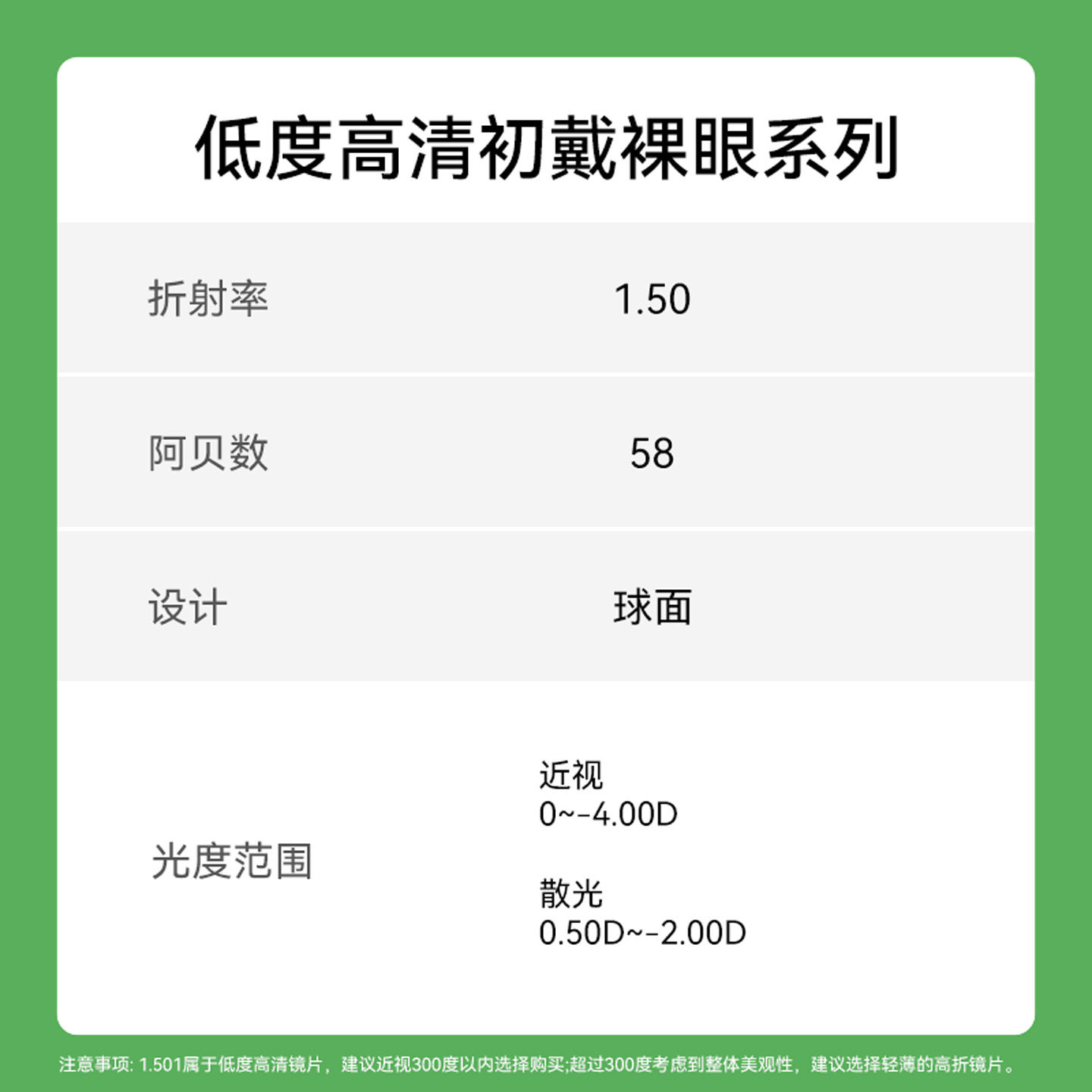 康耐特1.501低度高清58阿贝数防蓝光球面初戴裸眼镜片配纯钛眼镜