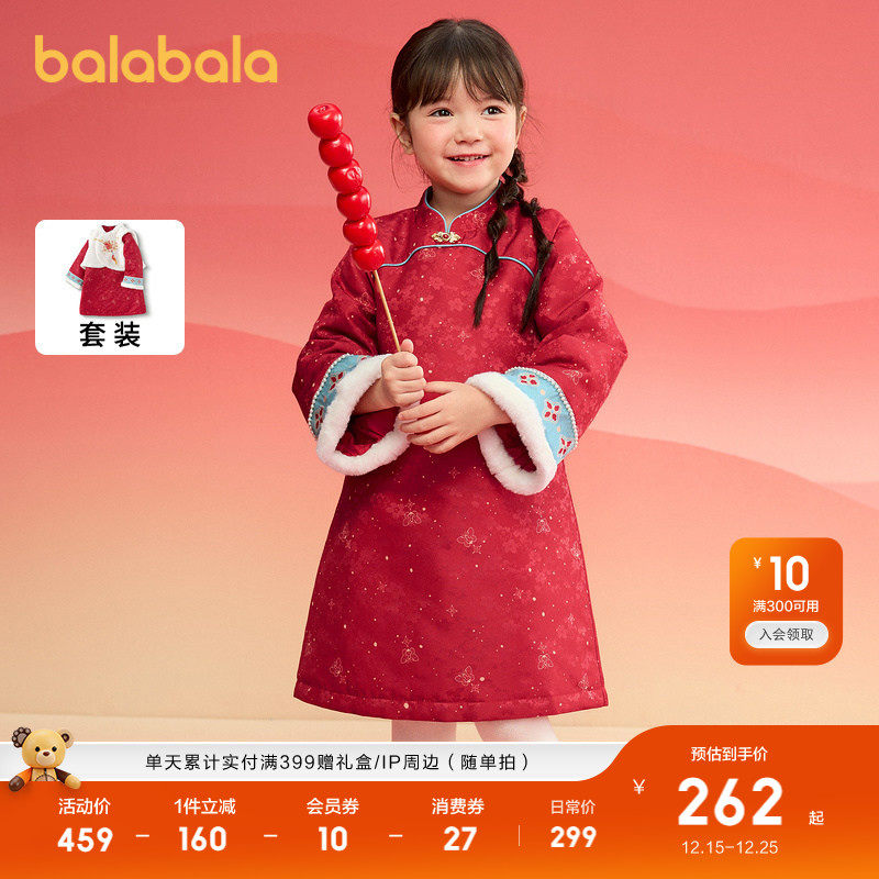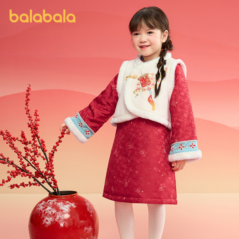 巴拉巴拉童装女童旗袍儿童套装新中式2025春秋新款小童宝宝两件套