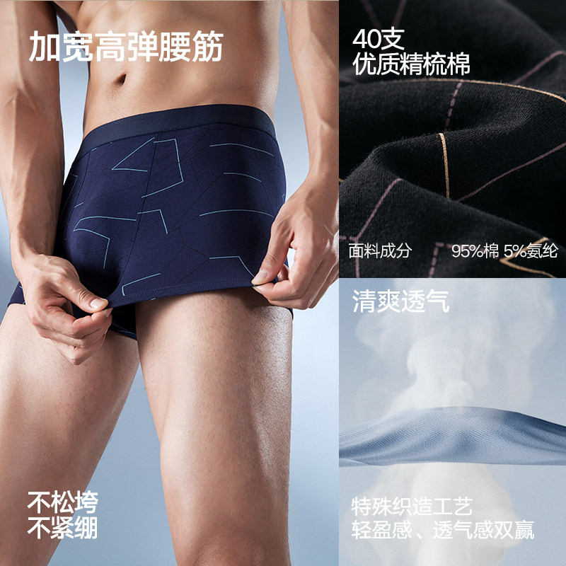 HLA/海澜之家男内裤精梳棉四角裤青年舒适高弹平角裤头抑菌三角裤