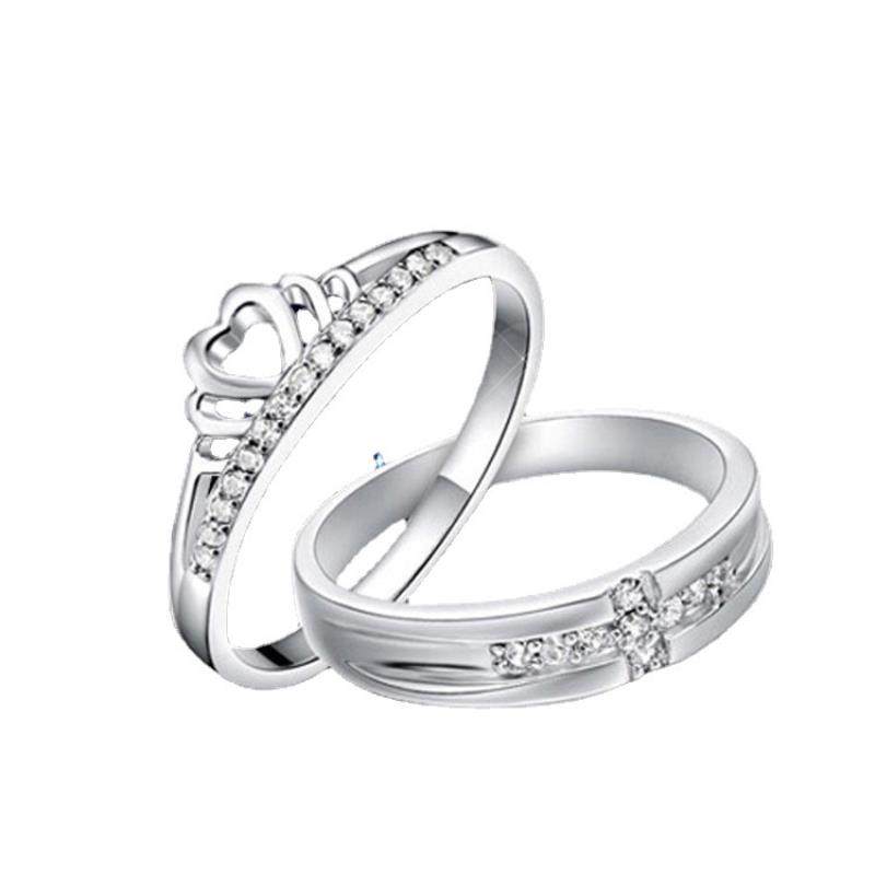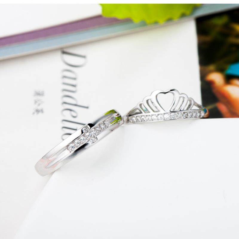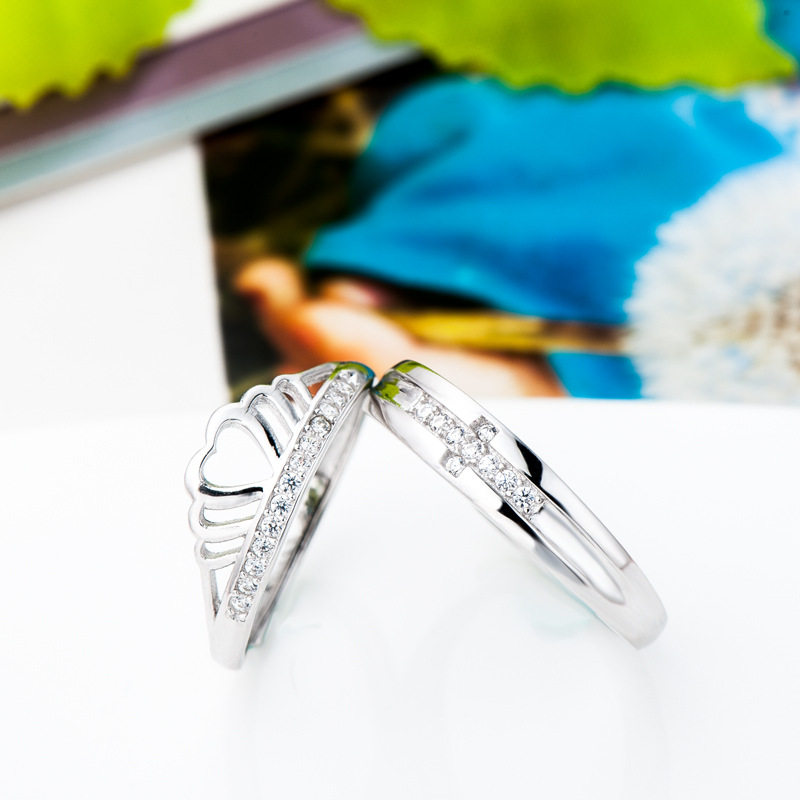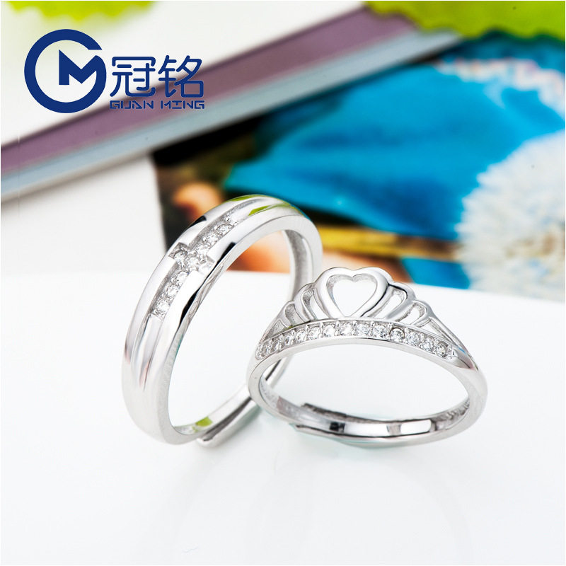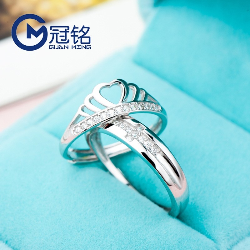 冠铭银饰s925纯银皇冠开口戒指一对韩版微镶钻戒情侣对戒工厂批发