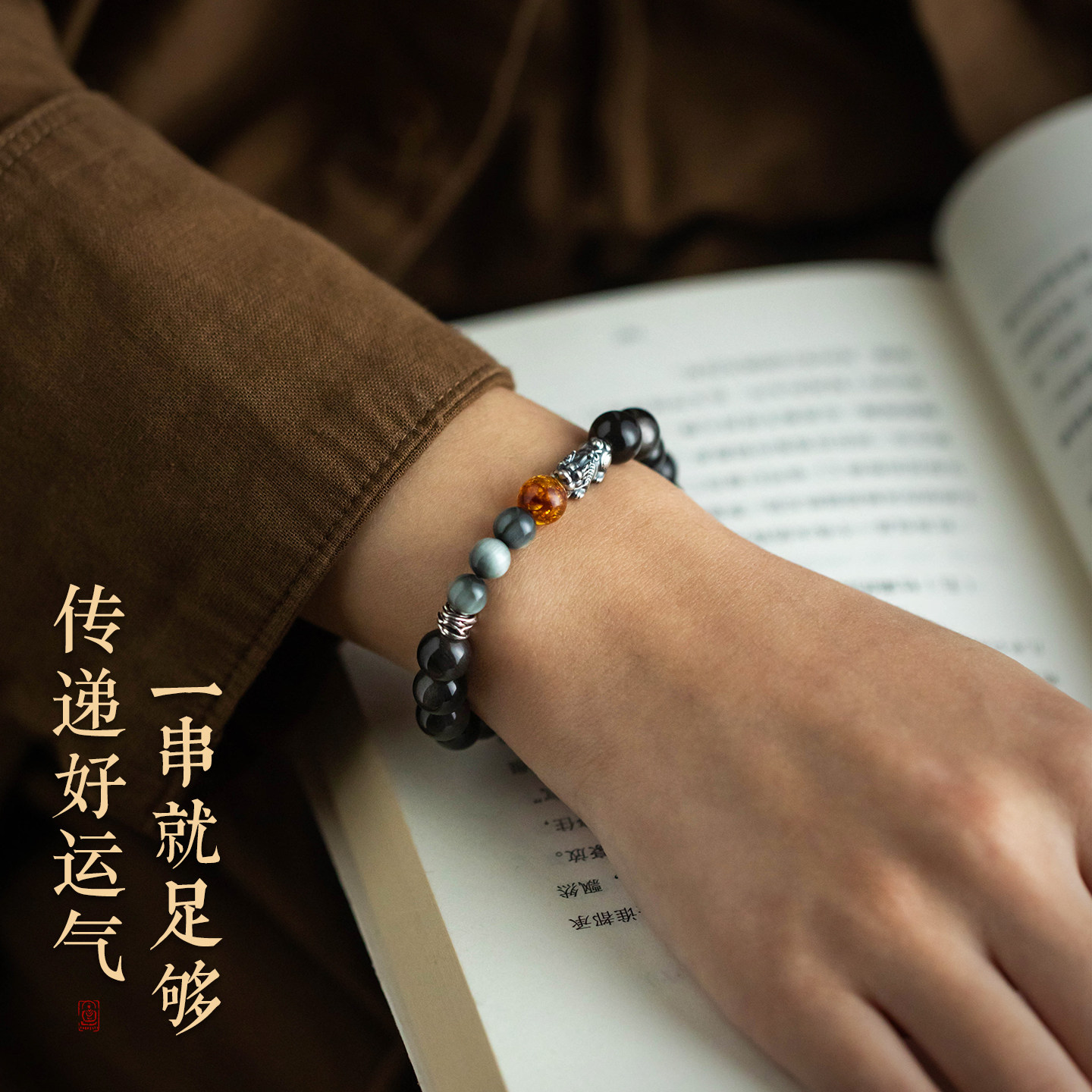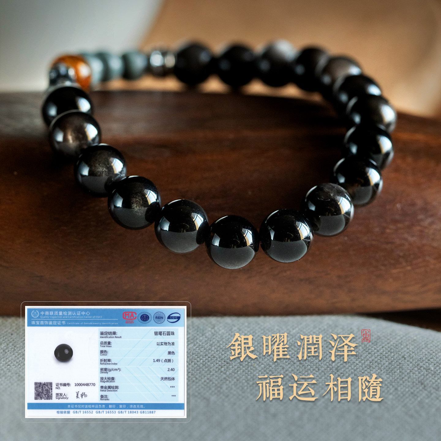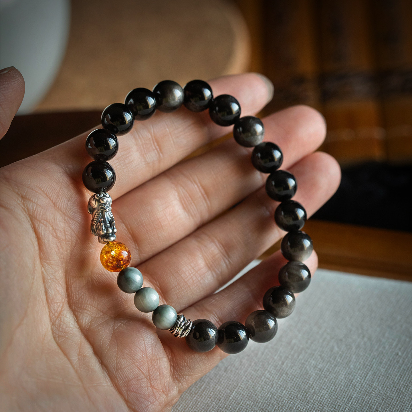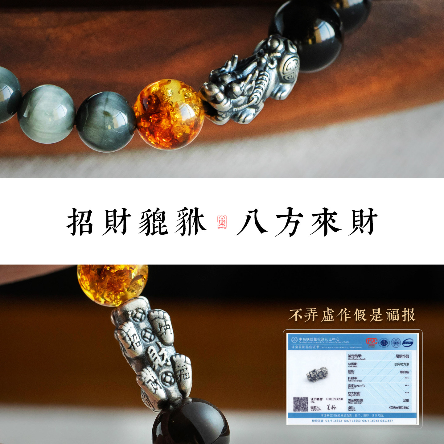 天然银耀石手串男马年本命年招财转运足银貔貅手链高级感男女礼物