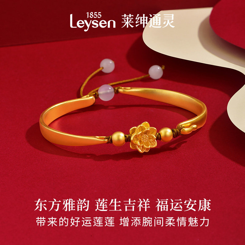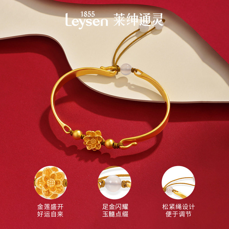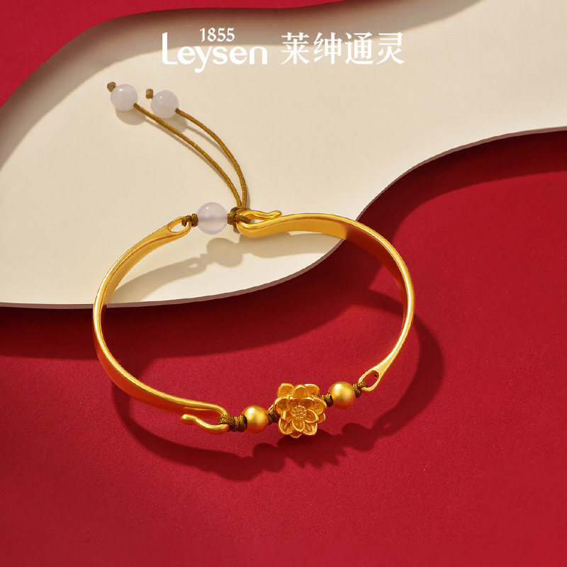 【计价金】莱绅通灵梵光系列 金莲莲花黄金足金手镯 金重多退少补