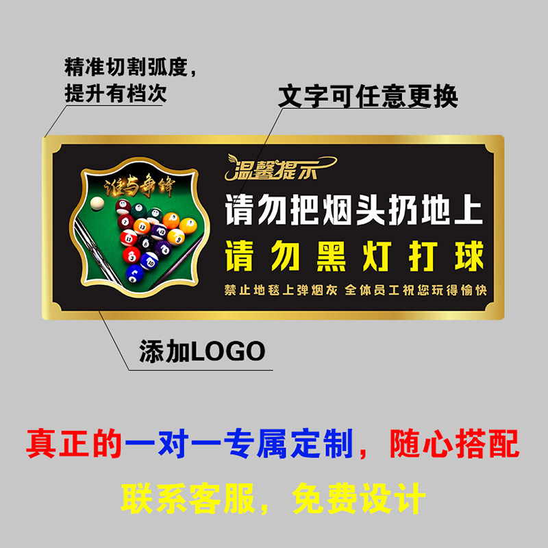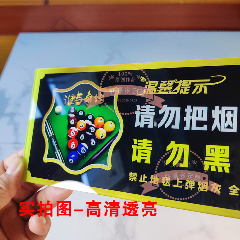 定制亚克力台球厅室温馨提示文明打球请勿黑灯打球内有监控标识牌