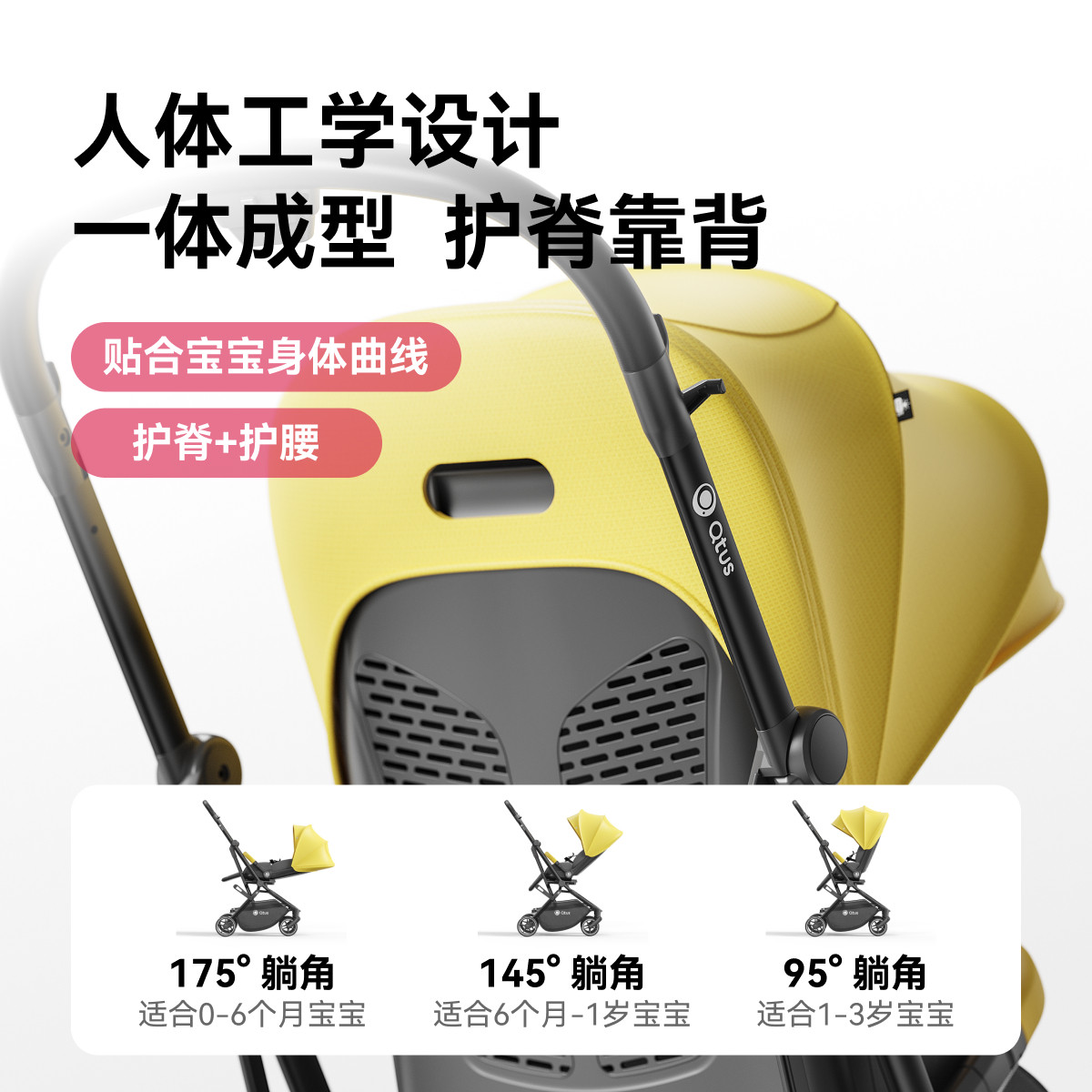 Qtus昆塔斯Q9plus3代新生婴儿四轮推车双向可坐躺折叠护脊新生