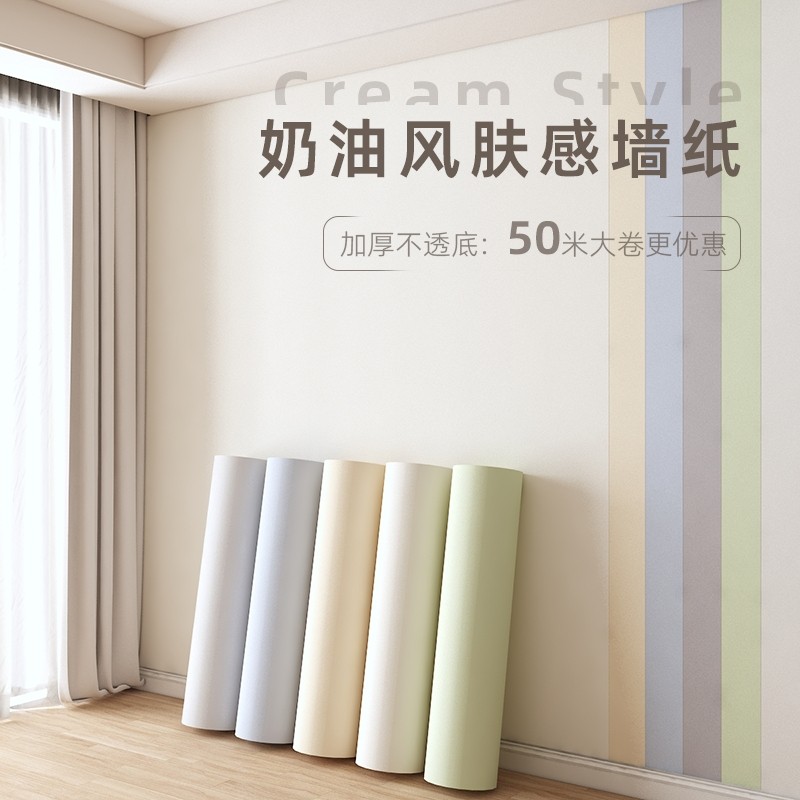 墙纸自粘防水防潮奶油风壁纸出租房背景墙面遮丑墙壁贴纸卧室柜子