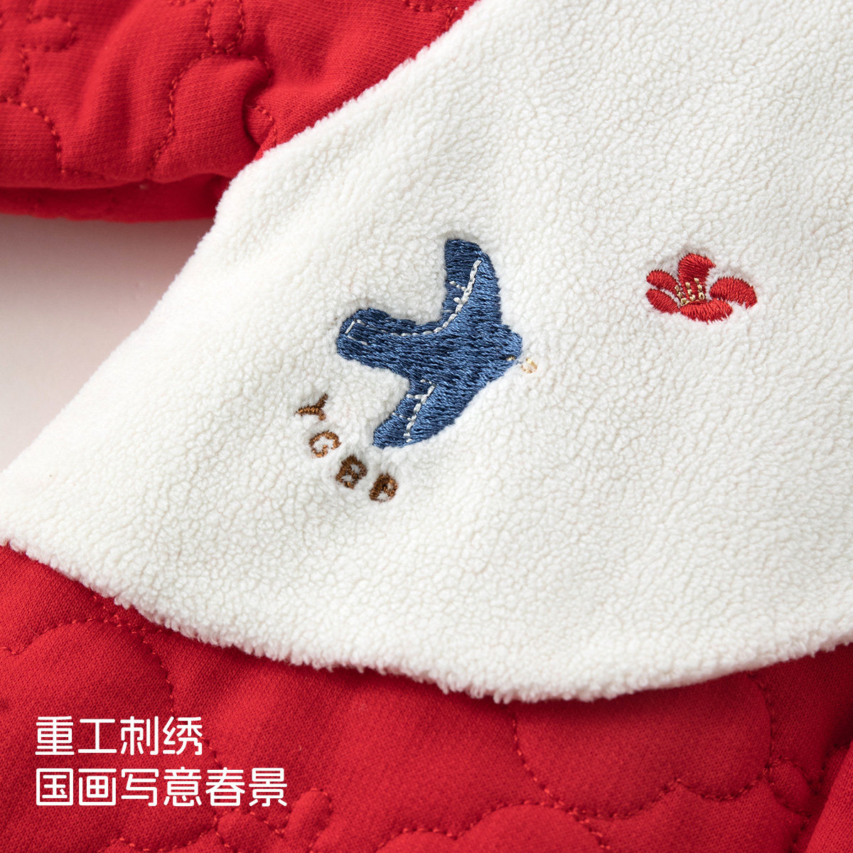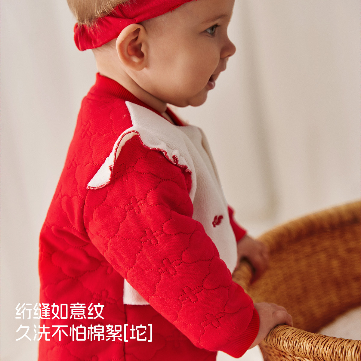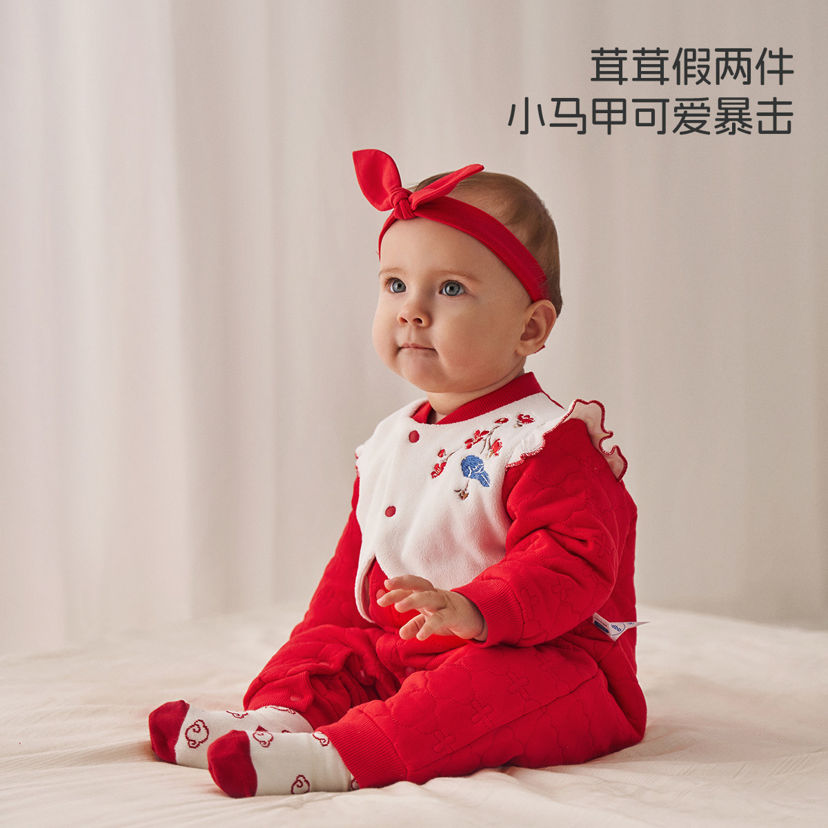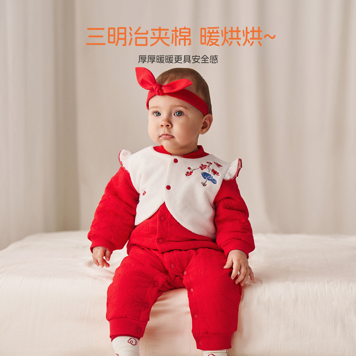 aqpa婴儿连体衣秋冬夹丝夹棉保暖哈衣初生宝宝睡衣新年满月外出服