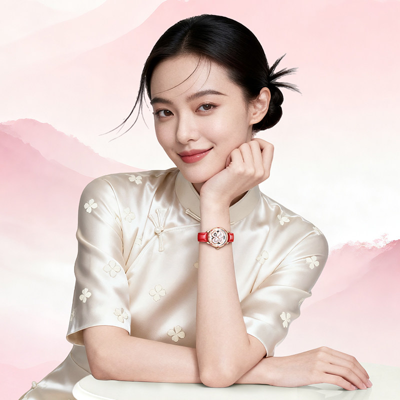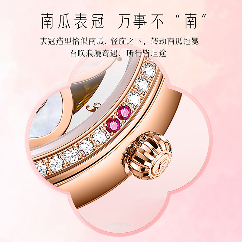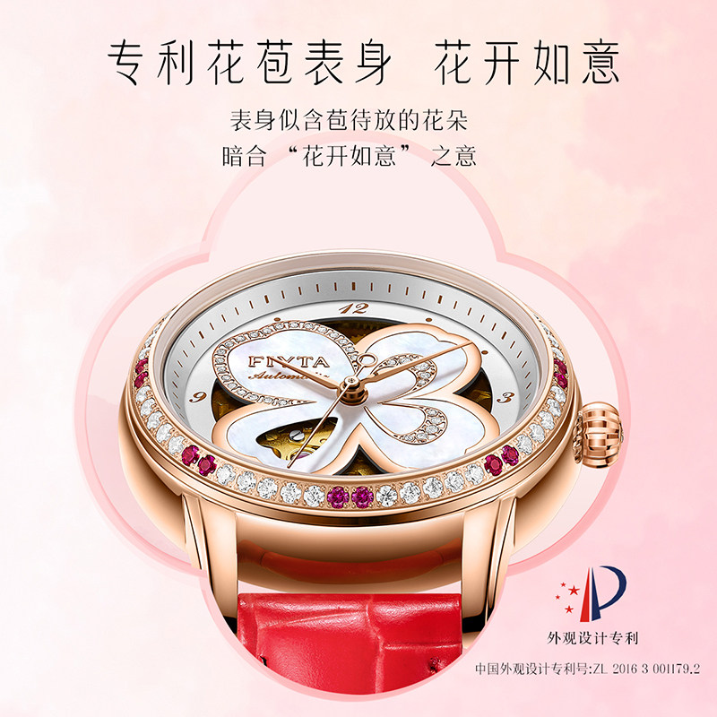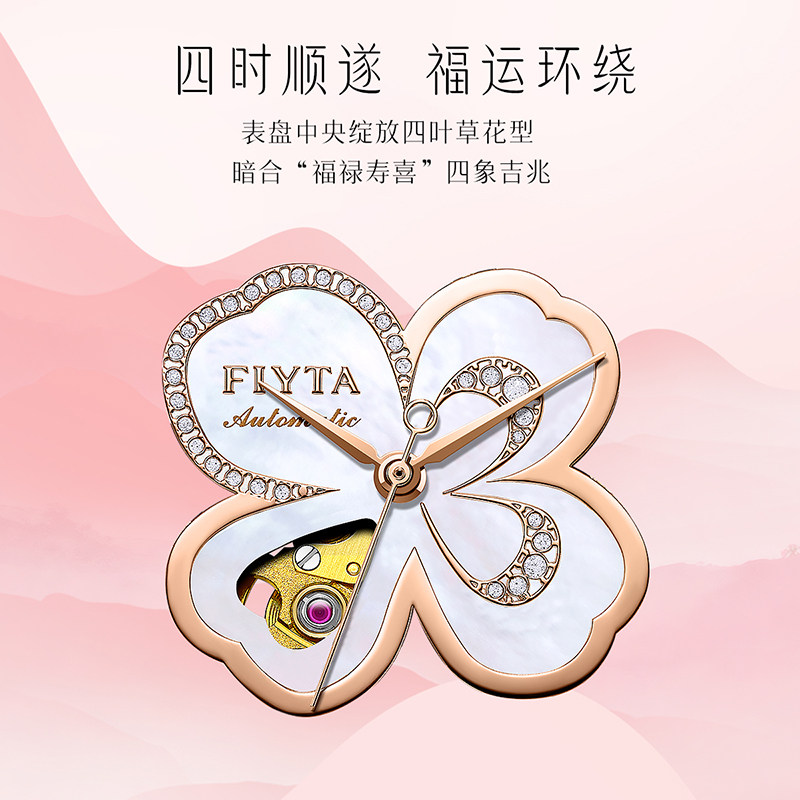 高圆圆同款飞亚达四叶草系列女表机械手表皮带时尚贝母镂空表