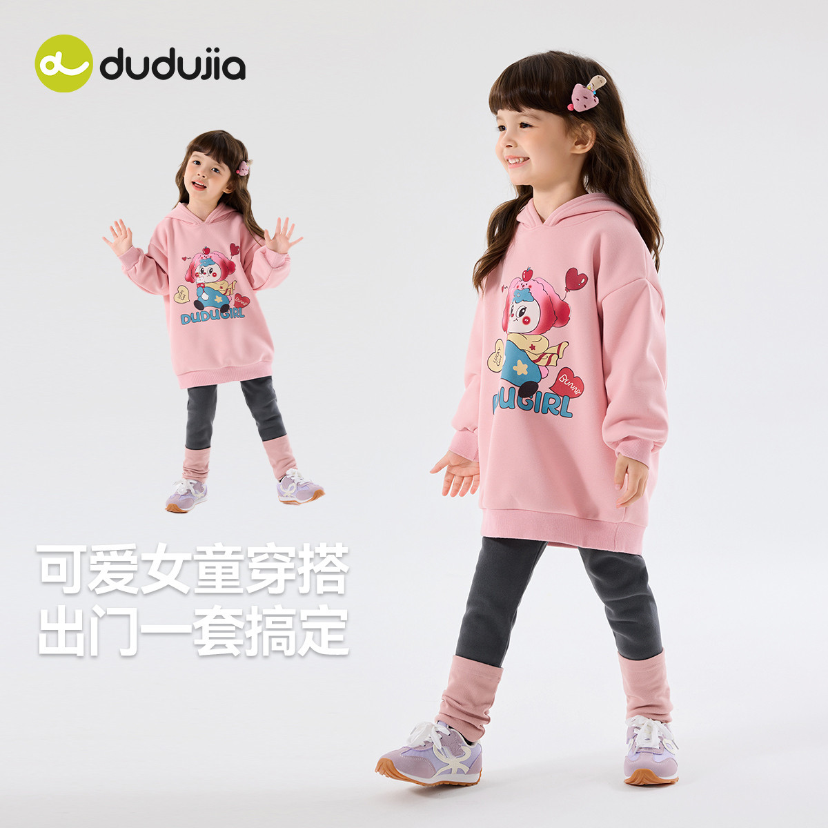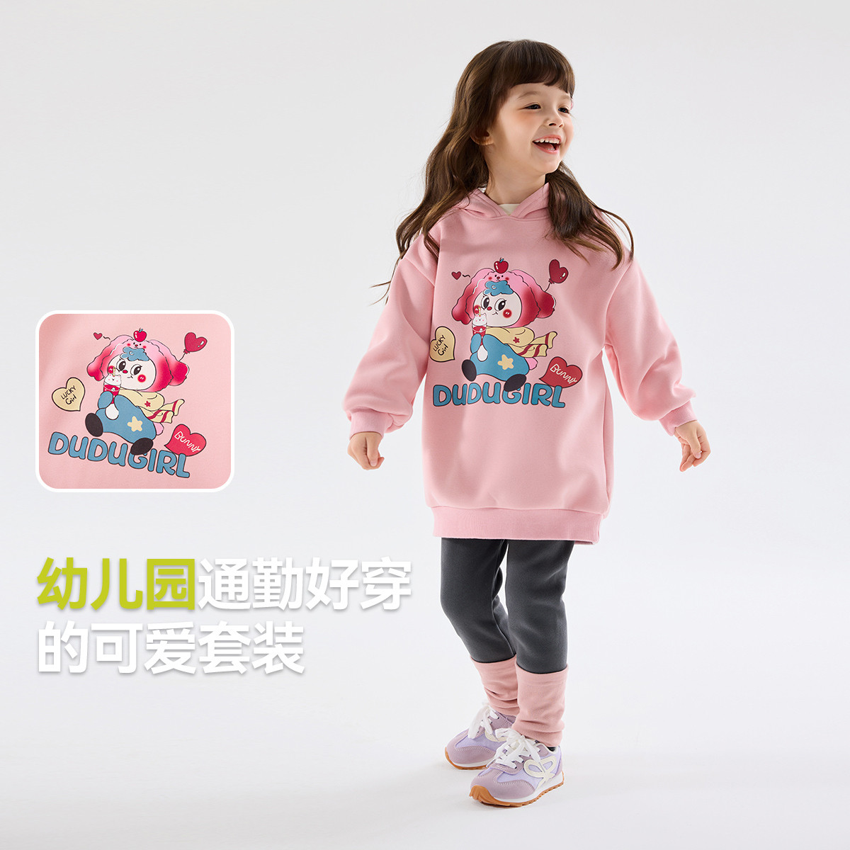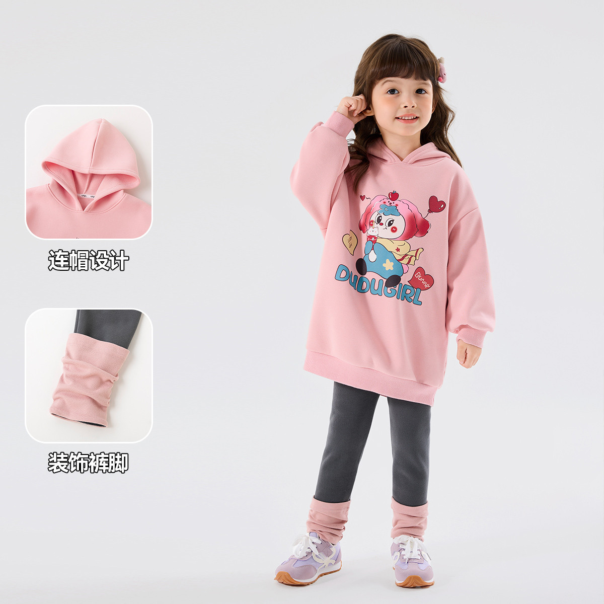 嘟嘟家女童套装冬季女宝加绒卫衣打底裤儿童厚上衣裤子小女生冬装