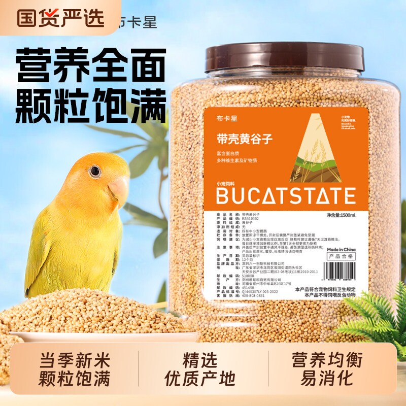 鹦鹉鸟粮鸟饲料鸟食玄凤牡丹虎皮专用食物新黄谷子带壳小米1500ml